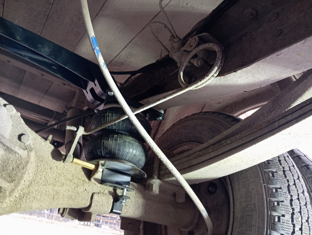 - пневмобаллон, лежащий в основе конструкции обеспечивает оптимальные характеристики работы подвески при разной загрузке. Можно отрегулировать жёсткость работы подушки давлением воздуха, подобрав этот параметр под себя. Этого нельзя сделать при усилении с помощью дополнительных листов, поэтому такие машины часто «козлит» при движении без груза;