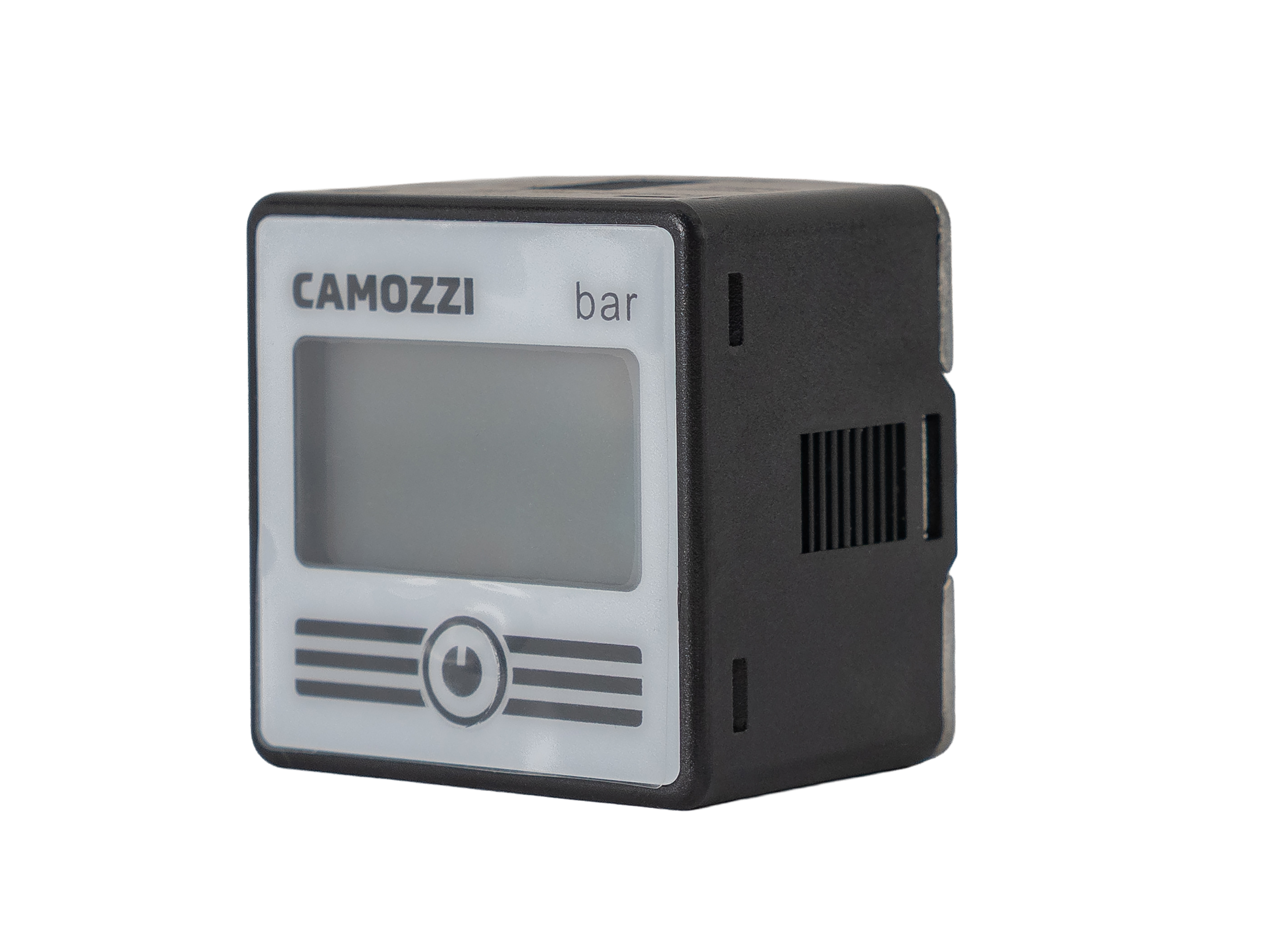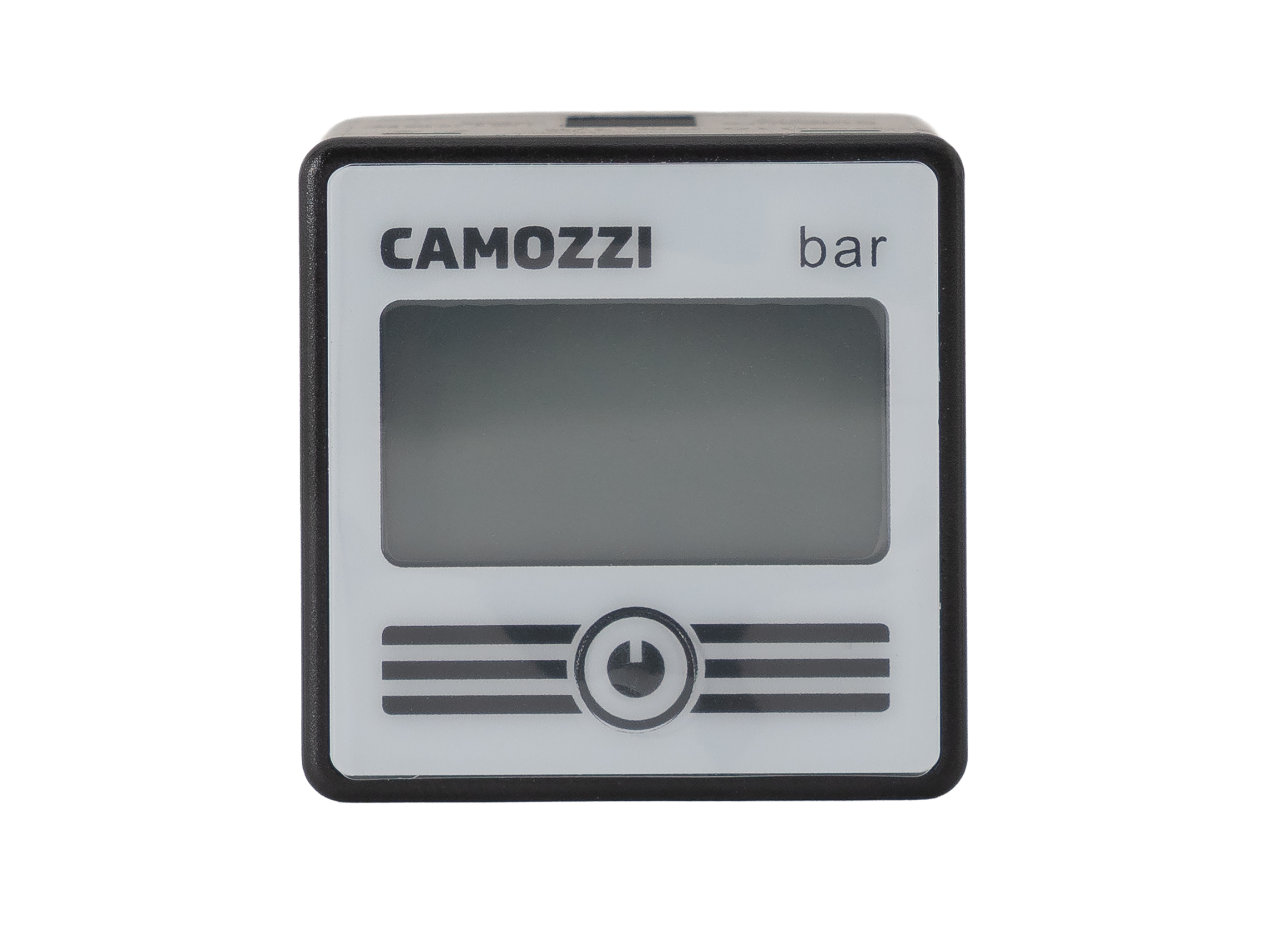 Цифровой манометр Camozzi, присоединение: G1/8", диапазон измерения давления: 0 ... 10 бар, максимальное давление: 15 бар, размер корпуса: 30x30 мм, с подсветкой, единицы измерения давления: psi, бар, kgf/cm², МПа. Класс защиты: IP65.