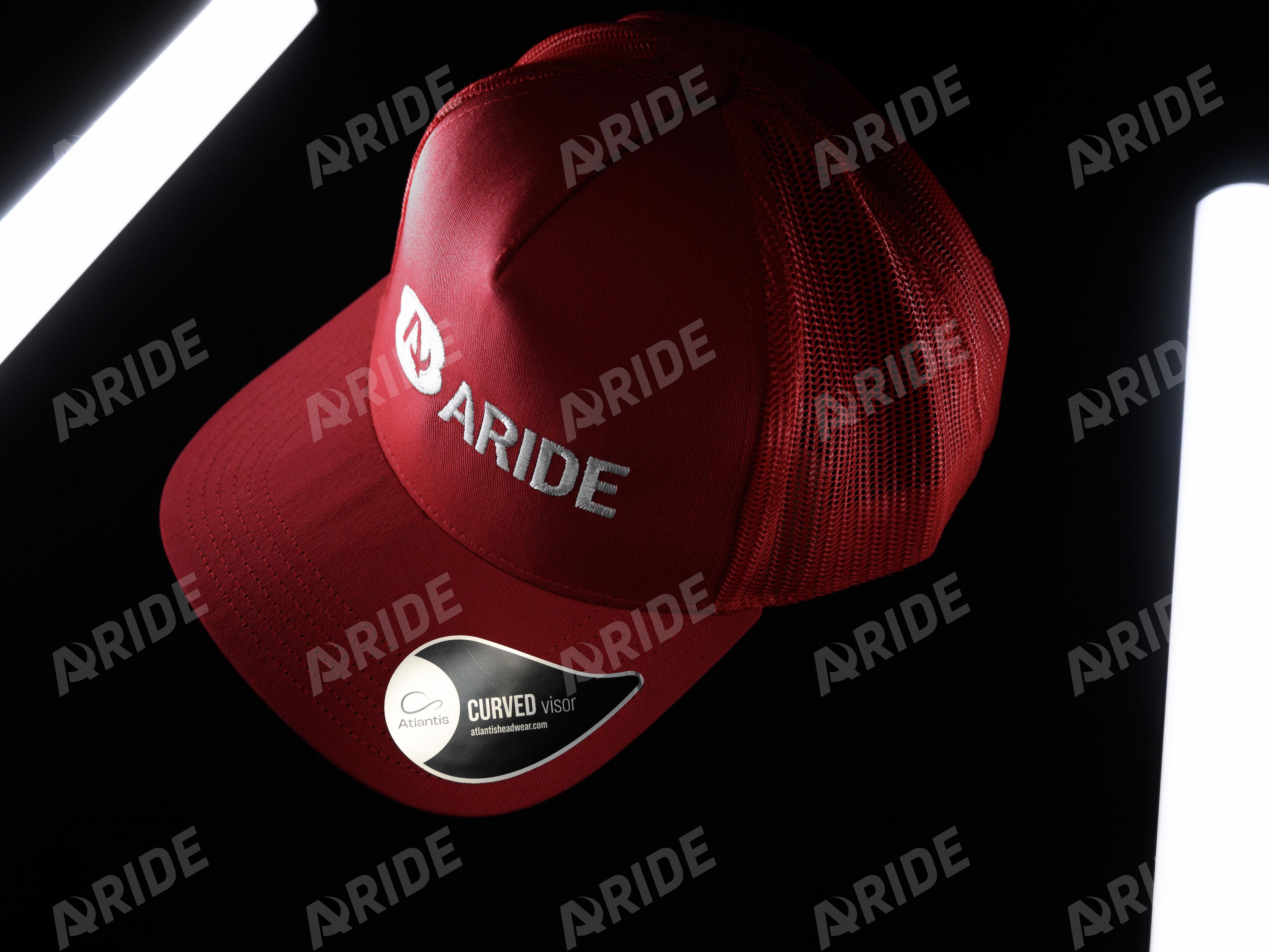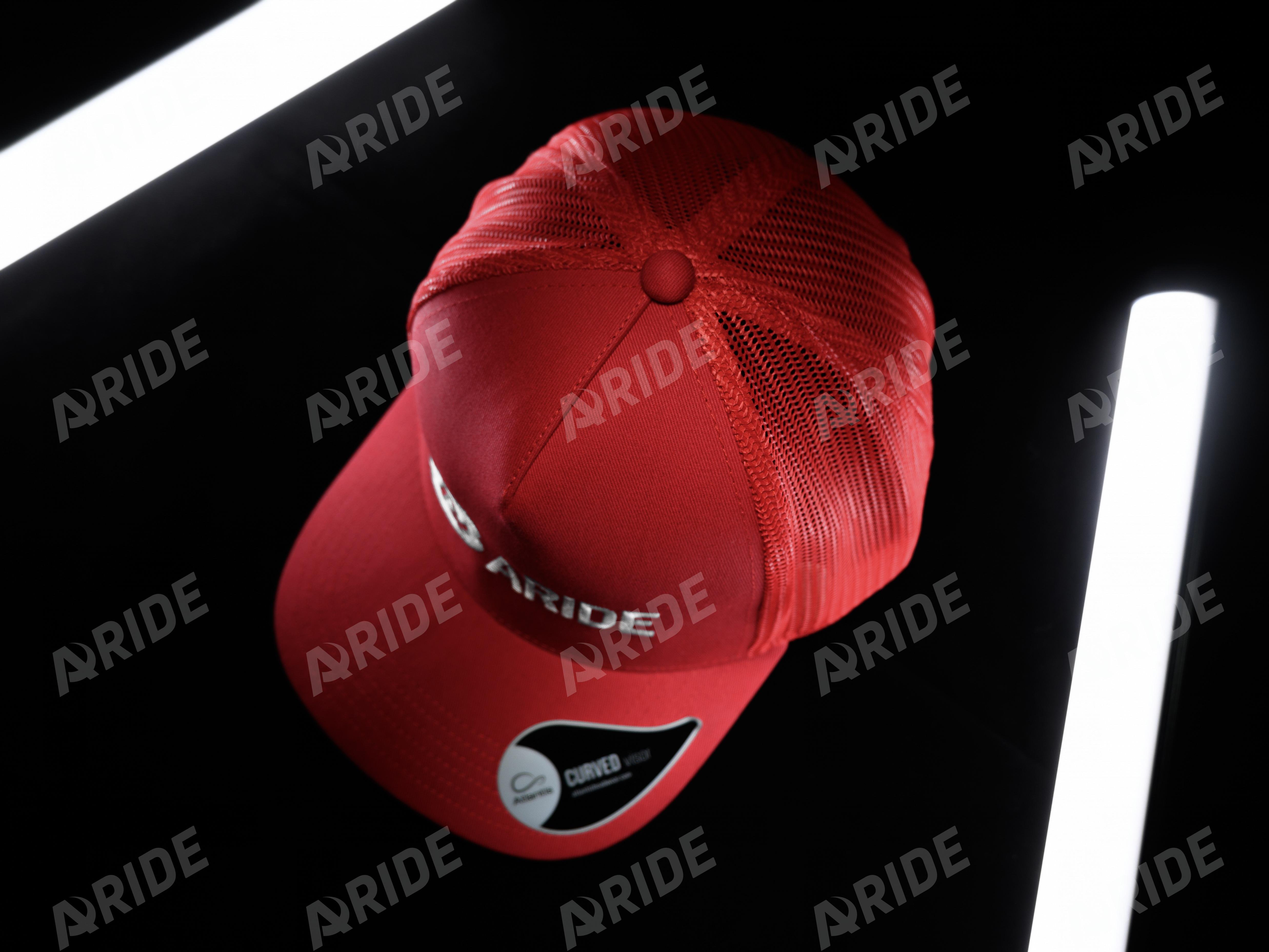 Брендированная кепка красного цвета, с толстым солнцезащитным козырьком. Фирменный логотип выполнен в один цвет, при помощи толстой вышивки. Кепка выполнена из 100% хлопка. Регулировка размера осуществляется за счёт пластиковой застёжки. Тыльная часть головного убора имеет сетчатую основу, что что способствует лучшей вентиляции.