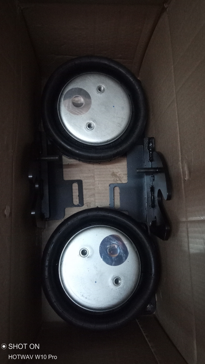 Комплект пневматической подвески разработан специально для автомобиля и включает в себя два пневмоэлемента, кронштейны для крепления к раме и мосту, крепеж, фурнитуру для накачки от внешнего компрессора, инструкцию по установки своими руками.