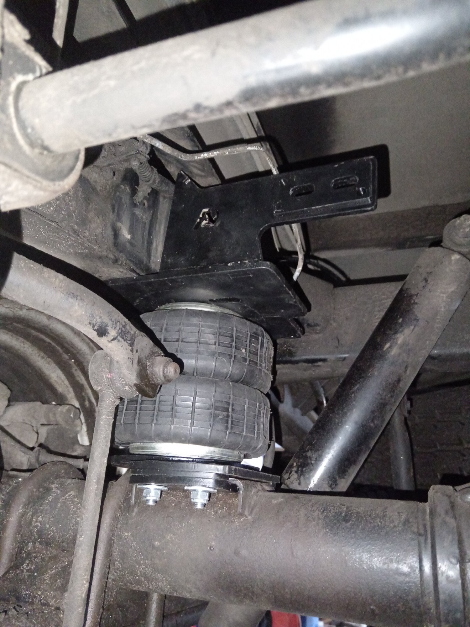 Комплект пневмоподвески устанавливается в дополнение к штатным рессорам и не вносит изменения в штатные элементы подвески. Следовательно, данный комплект не требует вносить изменения в ПТС автомобиля. Пневмоподушка ставится между рамой с рессорами на специальных крепежных пластинах, идущих в комплекте. Верхняя крепежная пластина ставится на раму в штатные отверстия, между крепления ставится дополнительная поперечная распорка для усиления рамы и распределения нагрузки. Нижняя крепежная пластина ставится на мост.