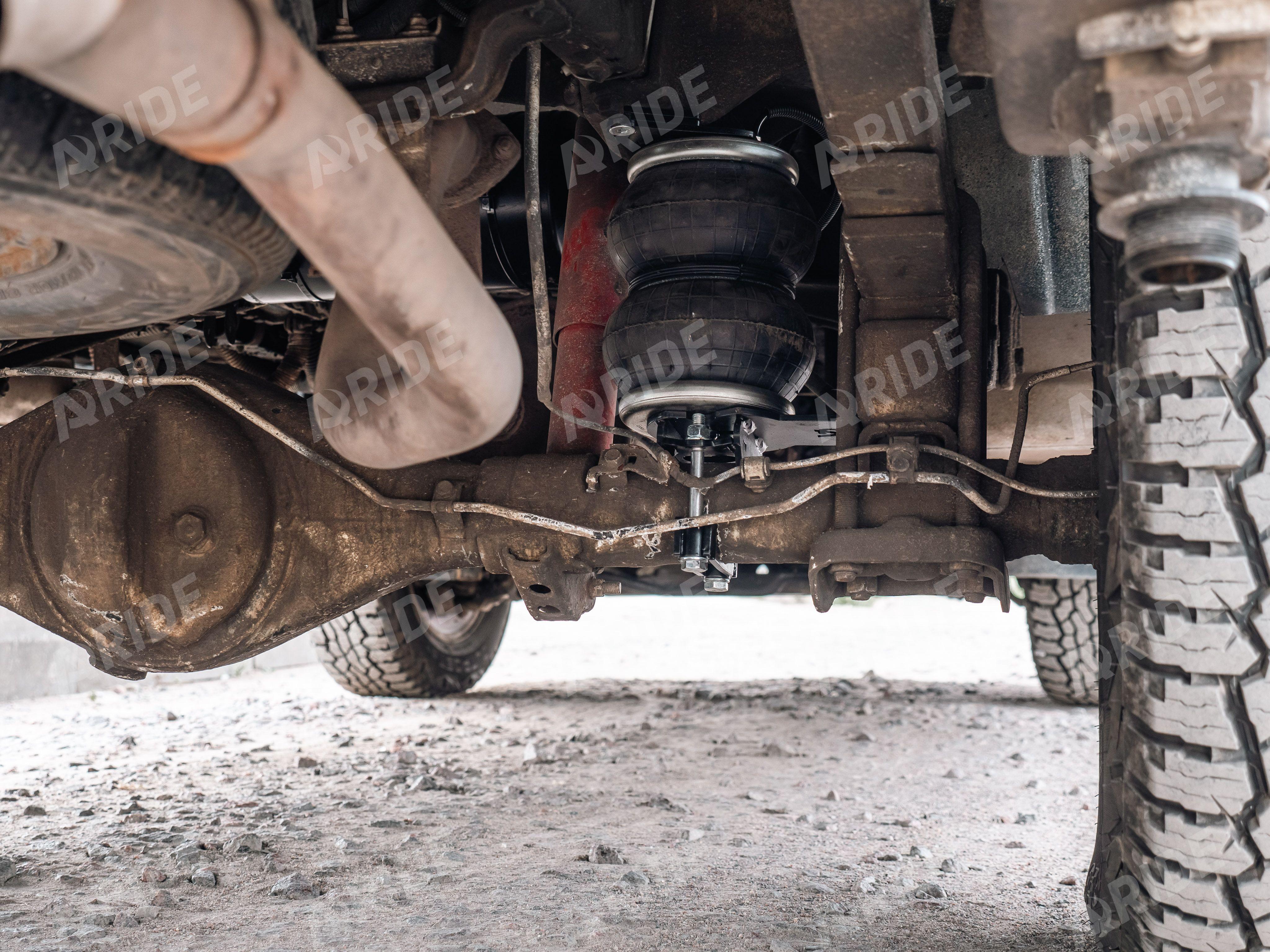 Комплект был стандартно расположен в дополнение к заводскому рессорному пакету. Пневмоподушки установлены между задним мостом и рамой. Такое расположение позволяет максимально верно распределить нагрузку.