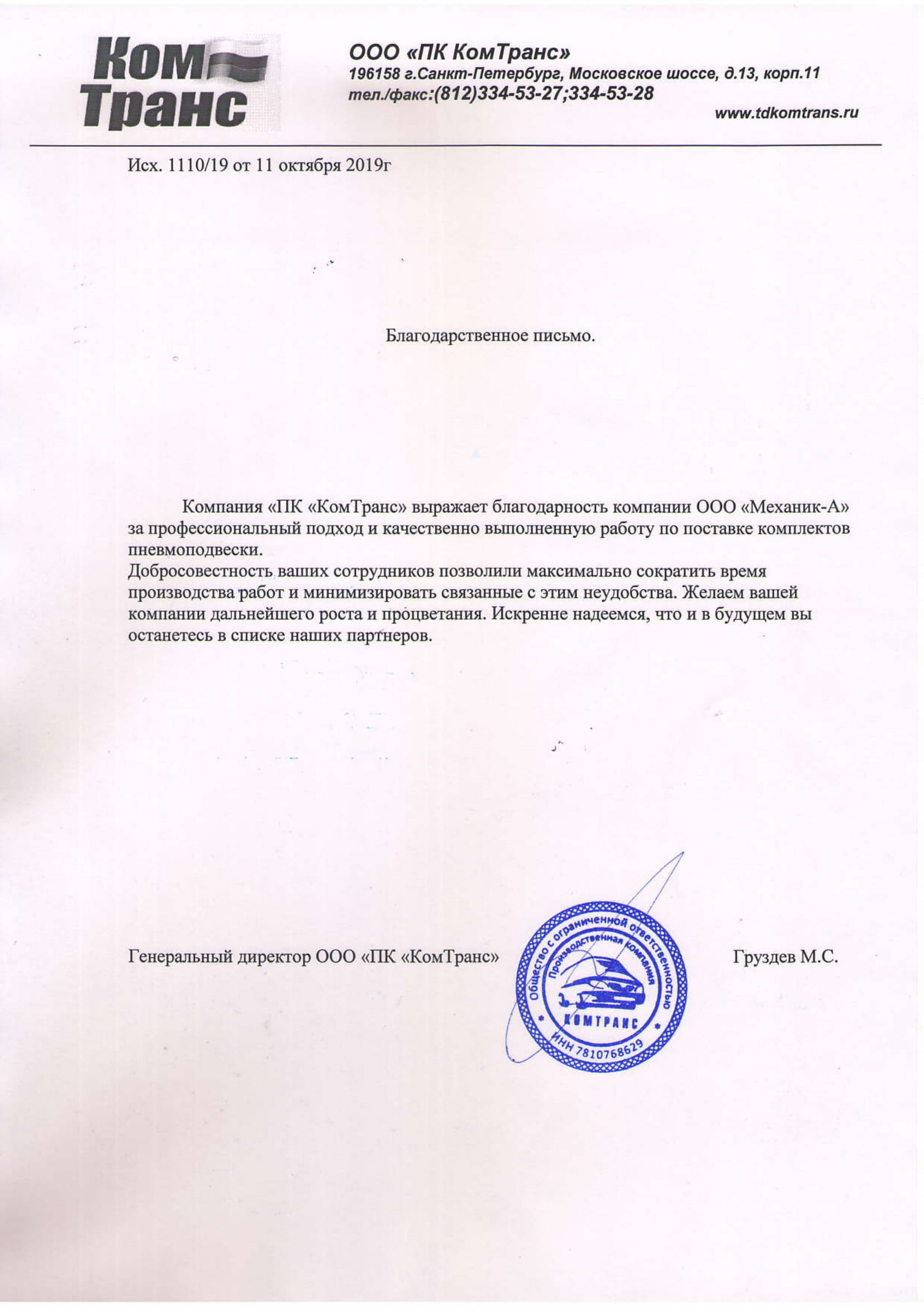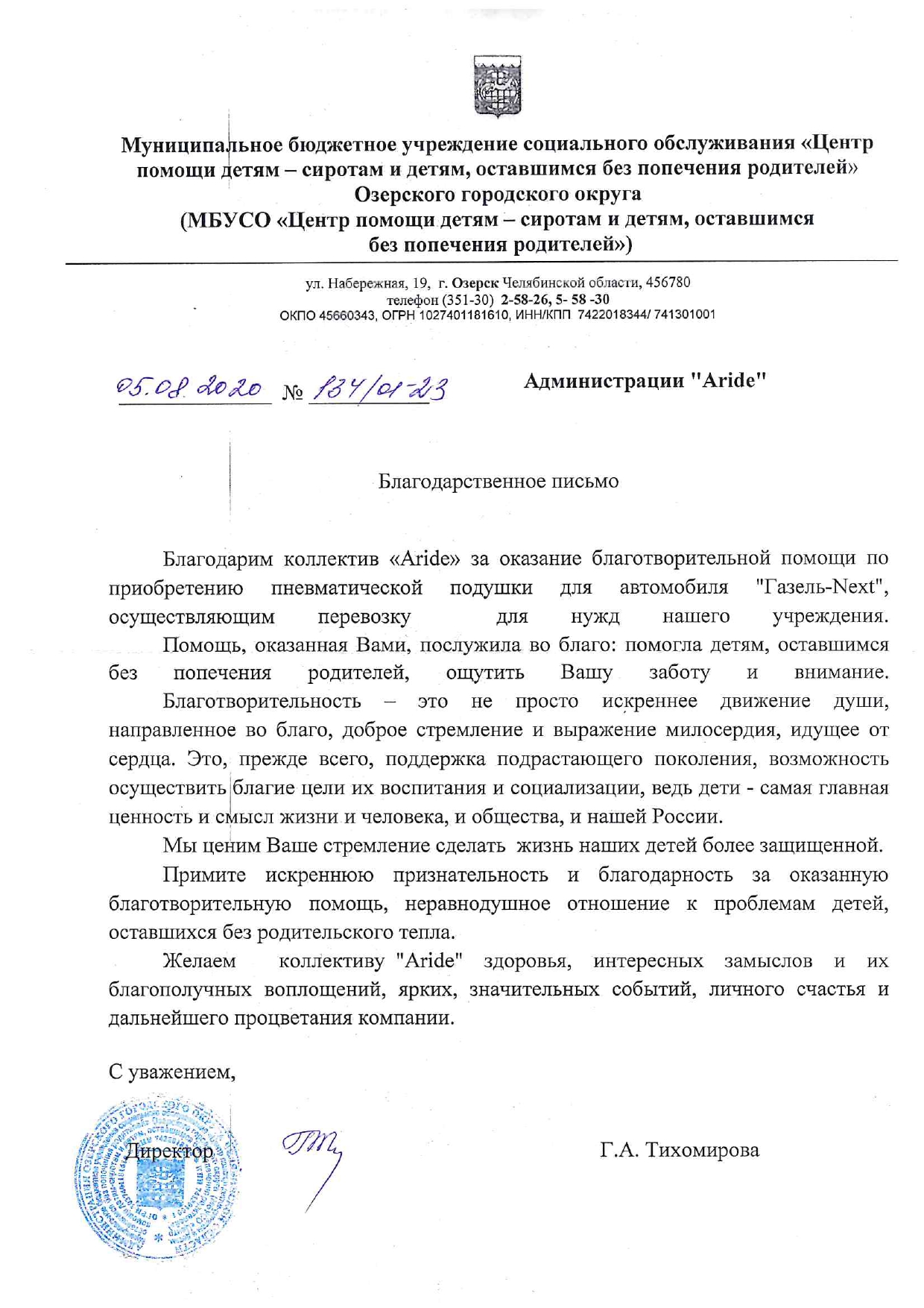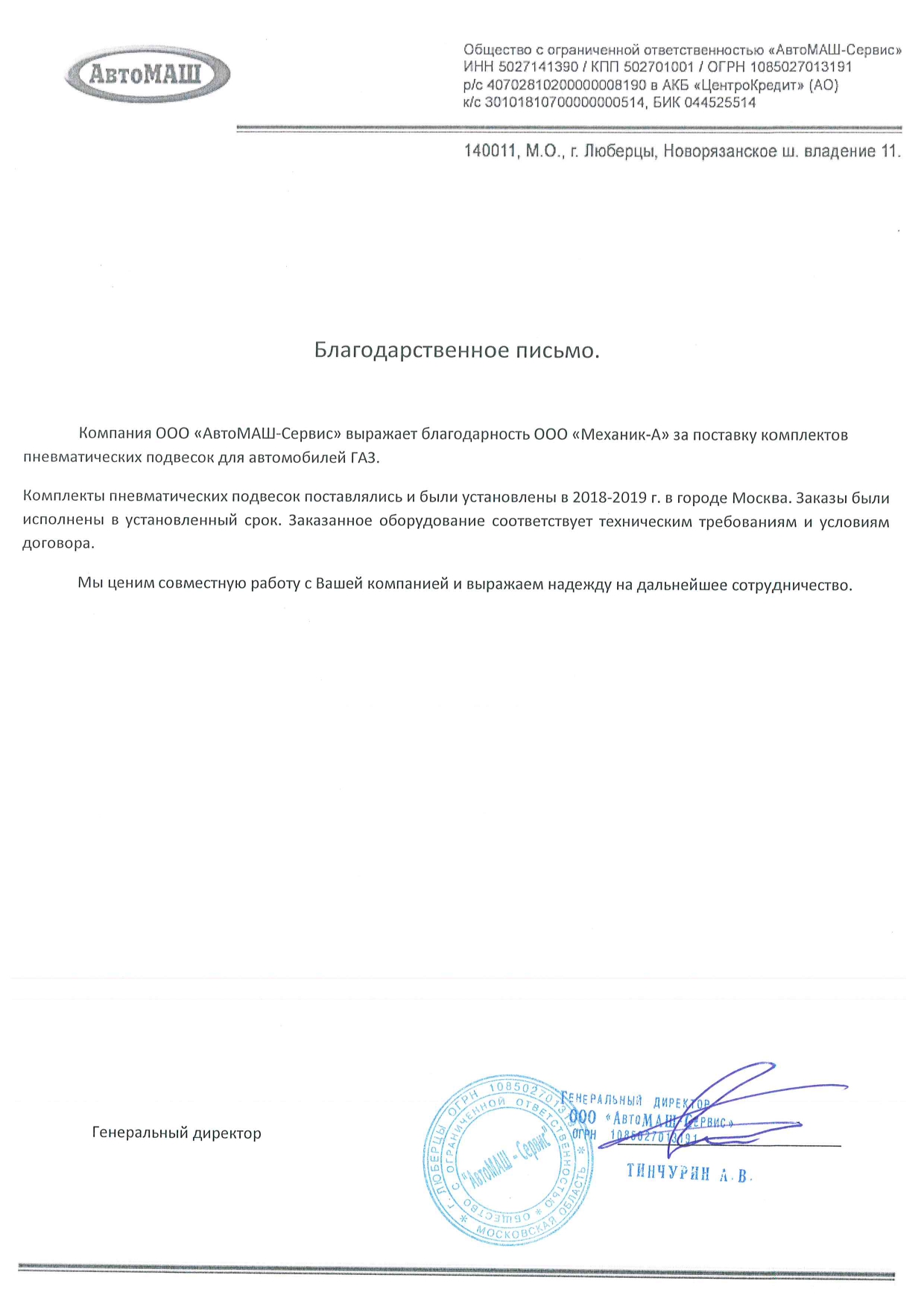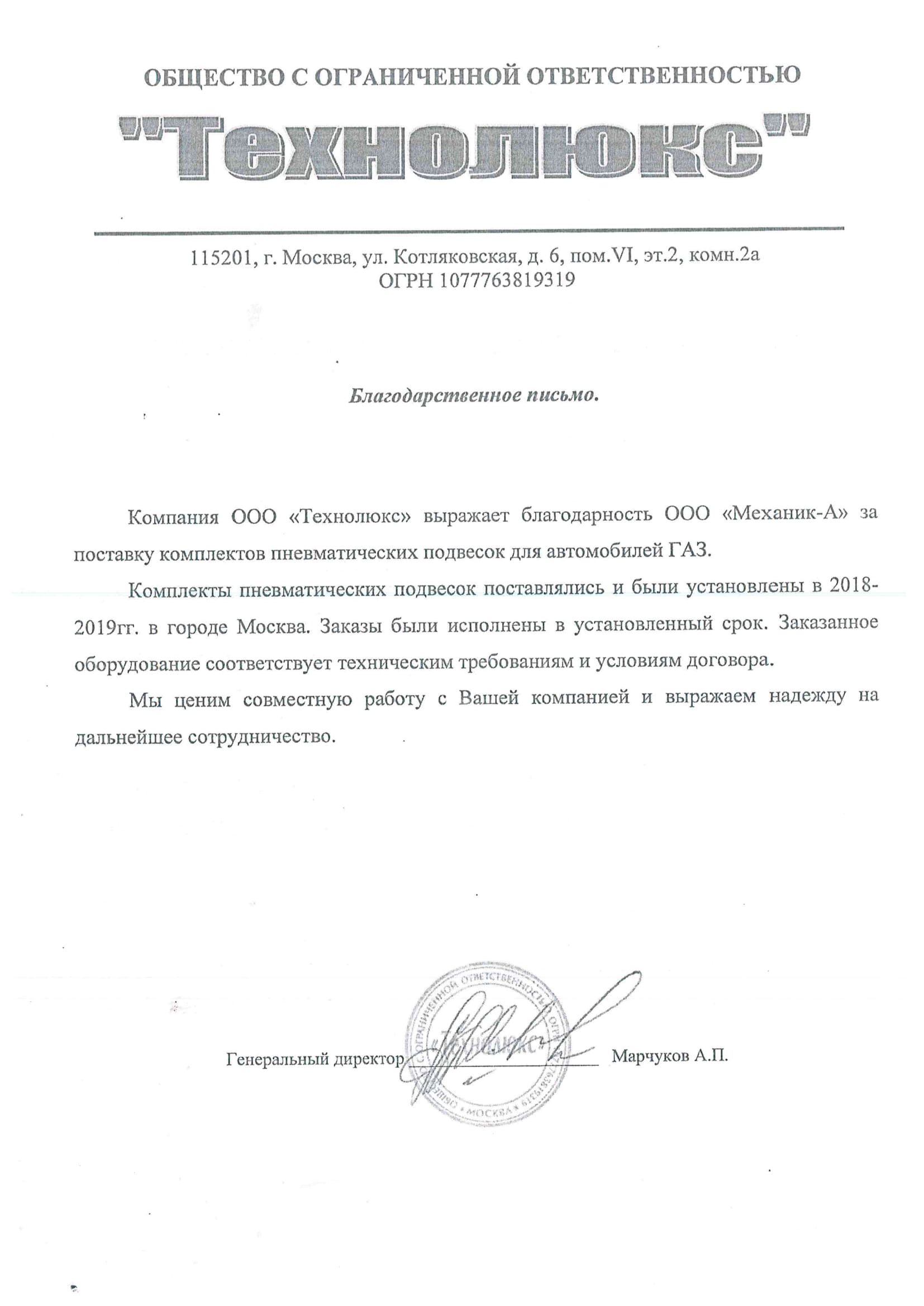 Благодарственные письма