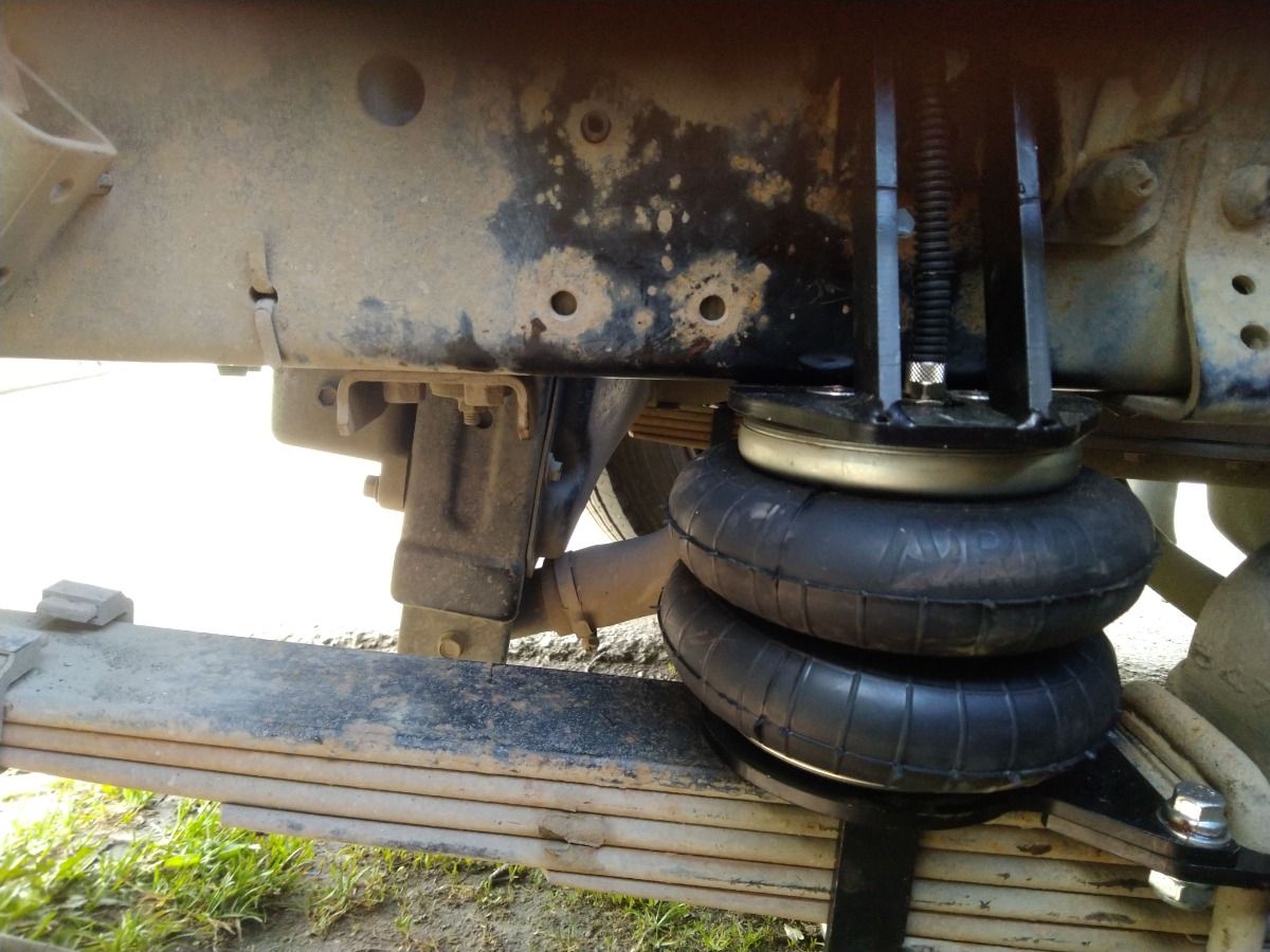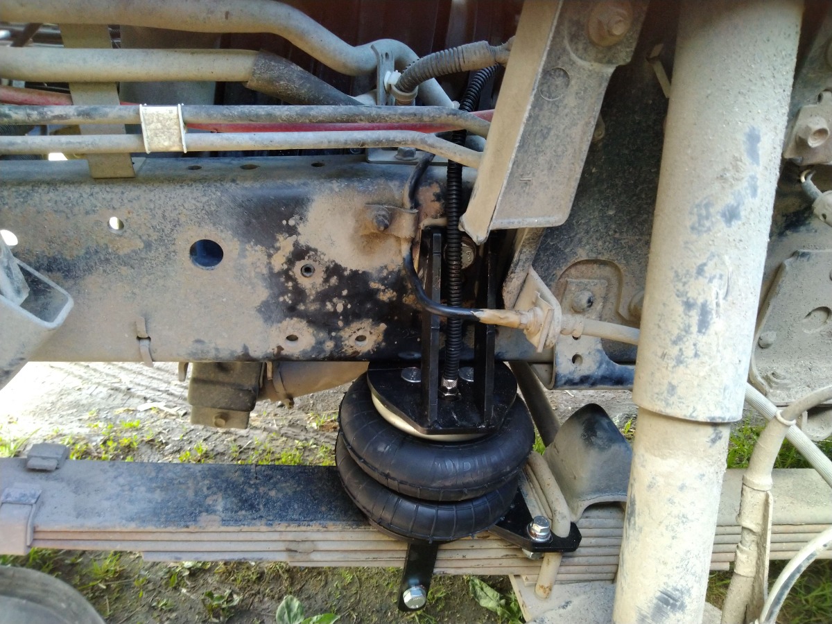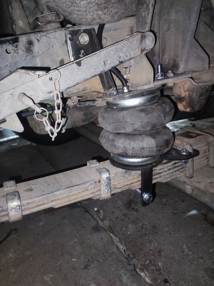 Летом поставил на обе оси пневморессоры. Работает всё на 5. Груз держит, на дороге кузов по сторонам не болтает.