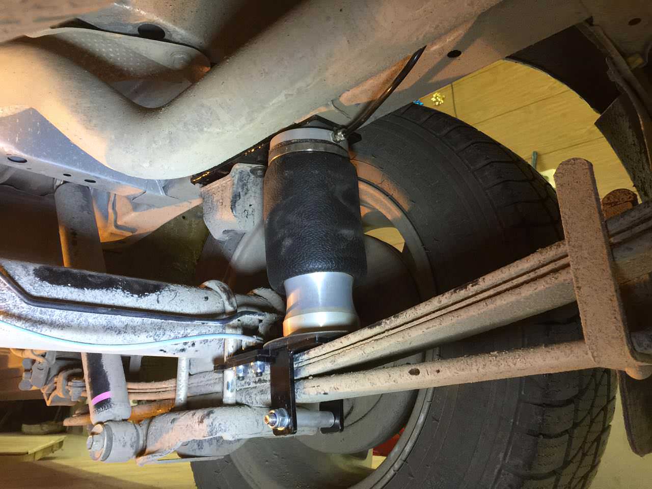 - пневмобаллон, лежащий в основе конструкции обеспечивает оптимальные характеристики работы подвески при разной загрузке. Можно отрегулировать жёсткость работы подушки давлением воздуха, подобрав этот параметр под себя. Этого нельзя сделать при усилении с помощью дополнительных листов, поэтому такие машины часто «козлит» при движении без груза;