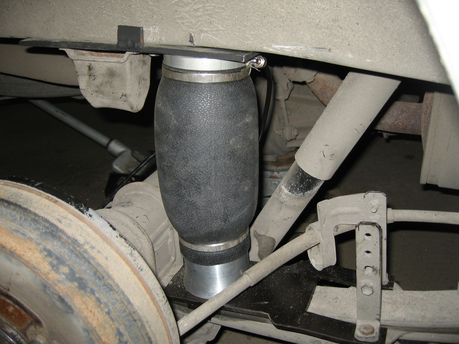 На самом деле всё проще, чем кажется. Основным рабочим элементом является пневморессора. Её еще называют пневмоподушкой, баллоном, пневмоэлементом, бубликами, сильфоном и т. д. Устанавливается пневмоэлемент между рамой и мостом шасси в автомобиле с помощью специальных кронштейнов для её надёжного крепления. В баллон подаётся сжатый воздух, при этом зажатая между рамой и мостом подушка пытается надуться, поднимая кузов. Звучит просто, а на деле каждая подушка способна поднять до 2000 кг груза! Сжатый воздух отводится от системы пневматичесих тормозов автомобиля, либо мы устанавливаем на микроавтобусы компрессорную систему. Поршневой компрессор работает от бортовой сети 12/24 В. Водитель следит за давлением в подушках по манометру и при необходимости подаёт или спускает из них давление.