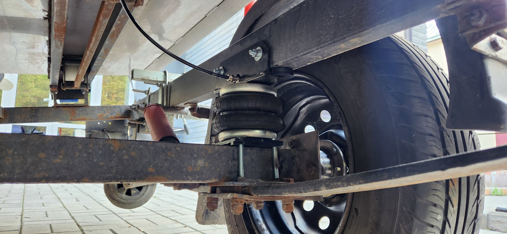 Хорошая пневмоподвеска. Ставили на другой прицеп с доработкой. После установки гружёный прицеп отлично себя ведёт.