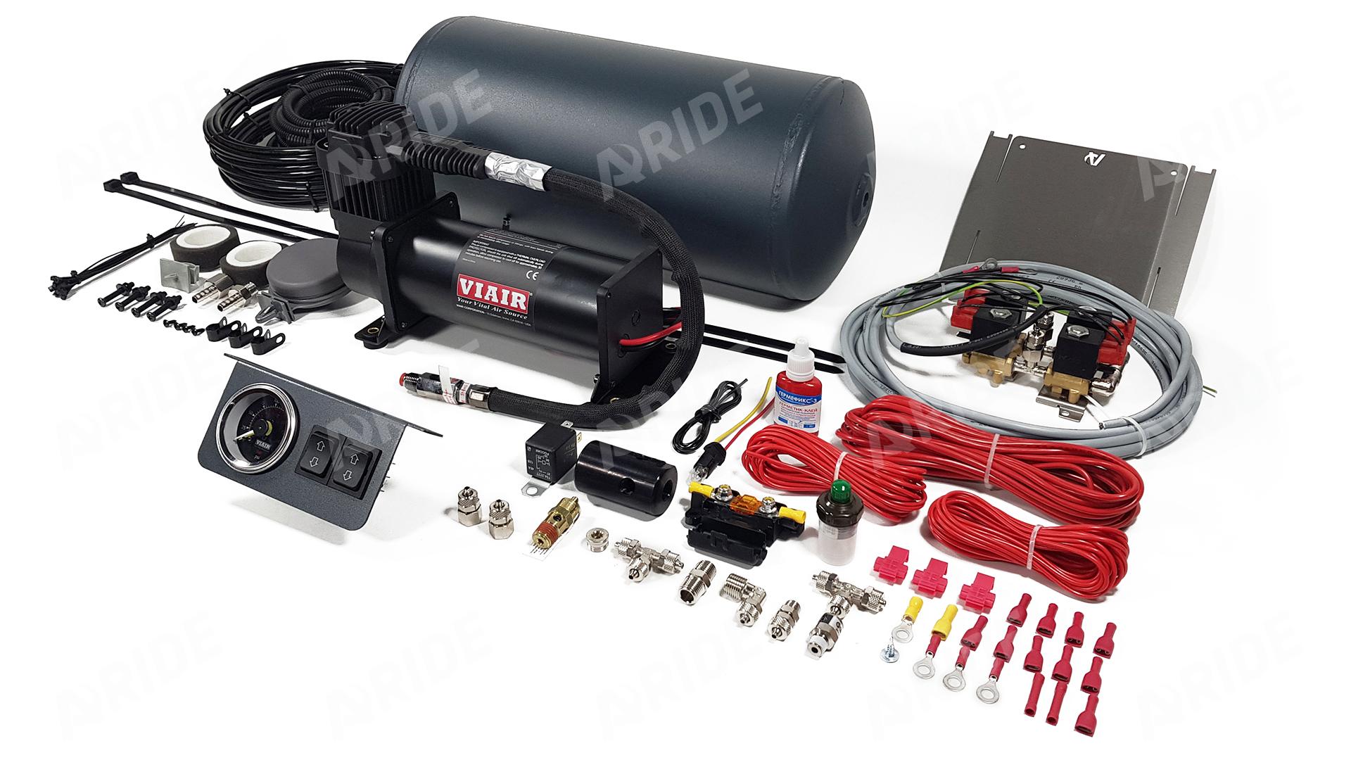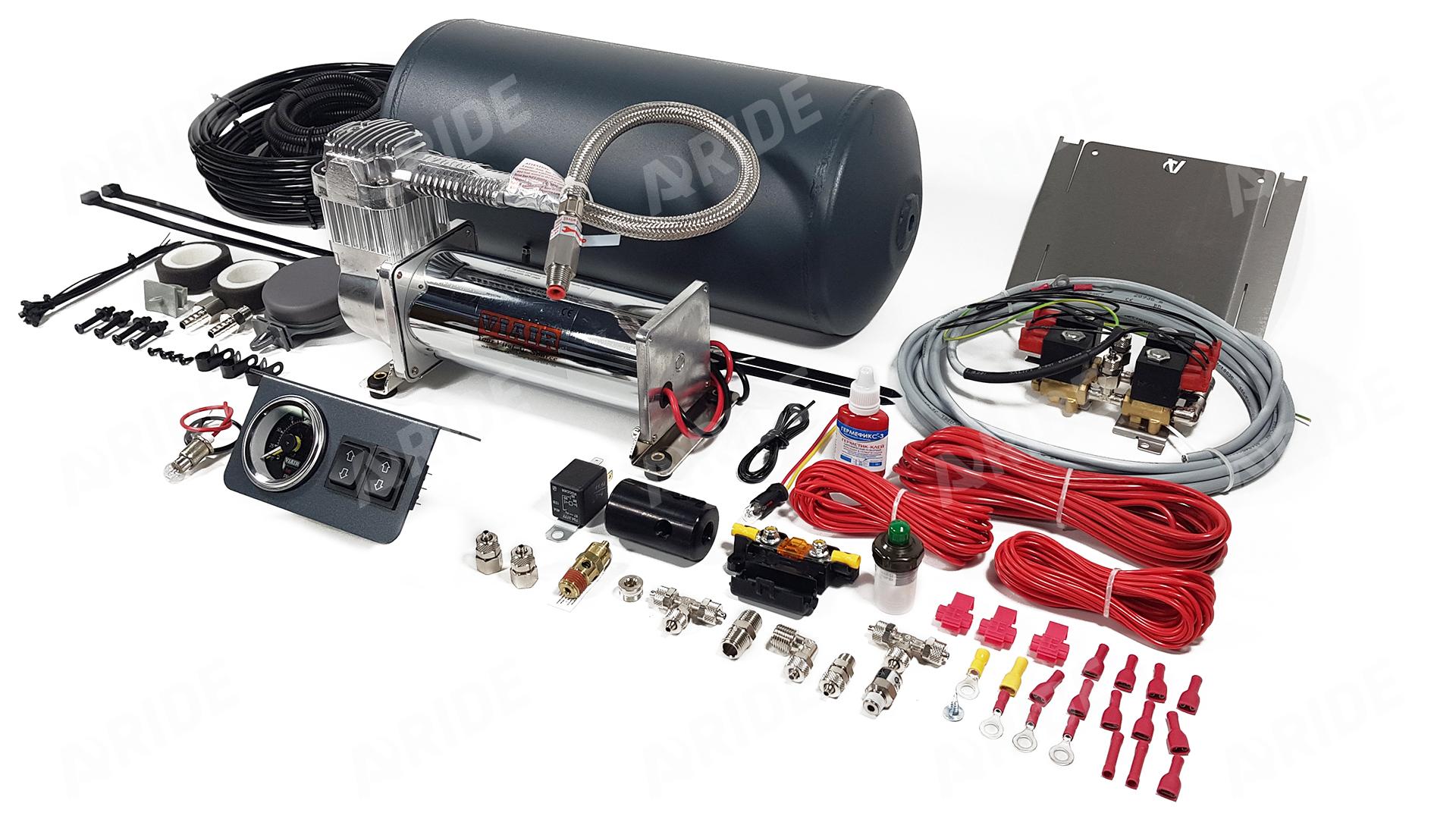 Далее система управления двухконтурная пневмоподвеской с ресивером 2.150.V по ее назначению может содержать в себе следующие комплектующие