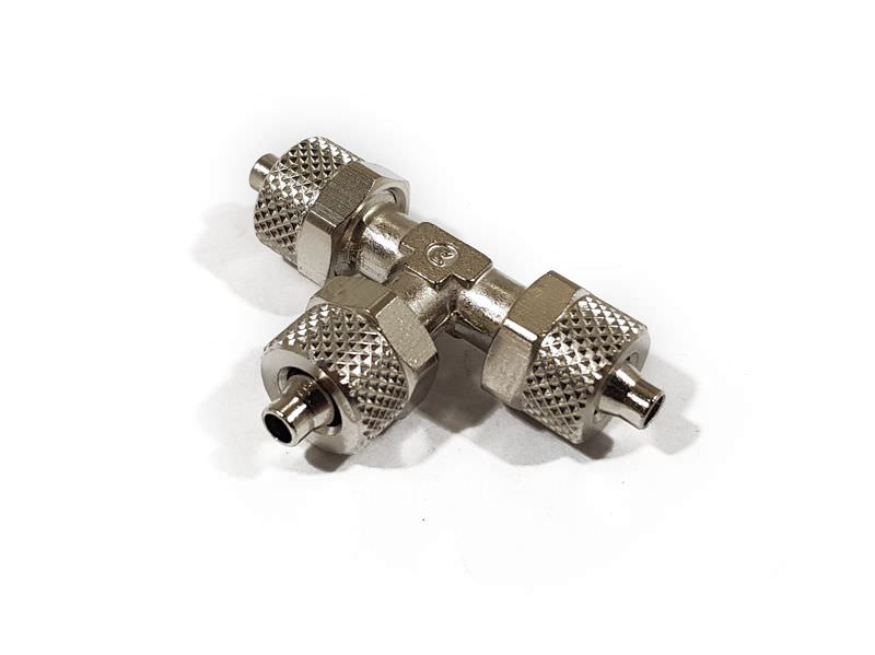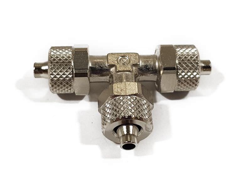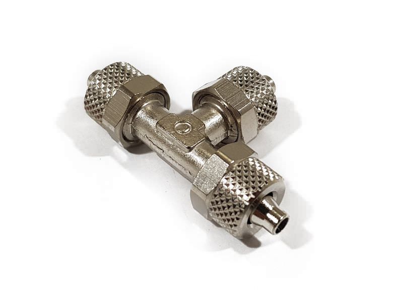Тройник Camozzi с накидными гайками для пластиковых трубок диаметром 6/4 мм.