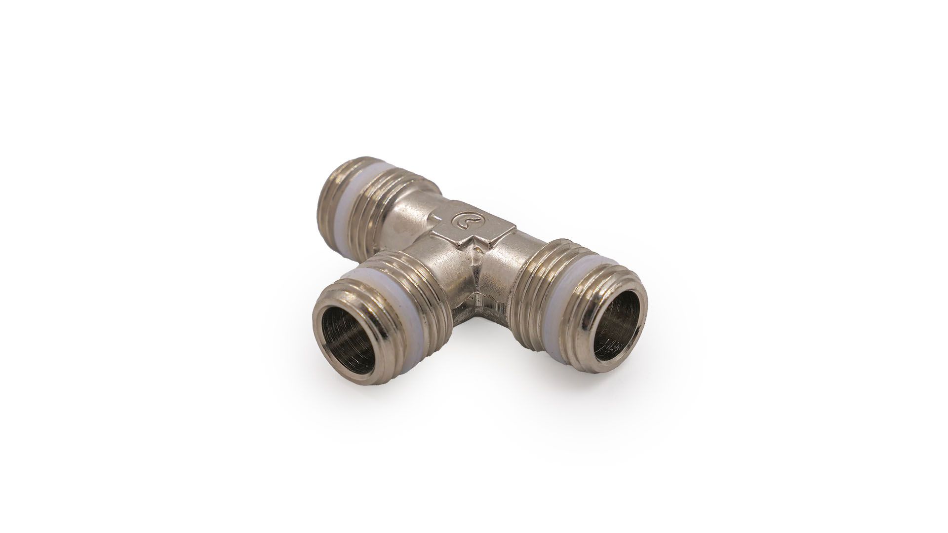 T-образное соединение Camozzi, наружная резьба R1/2" с фторопластовыми кольцами Sprint® на резьбе.