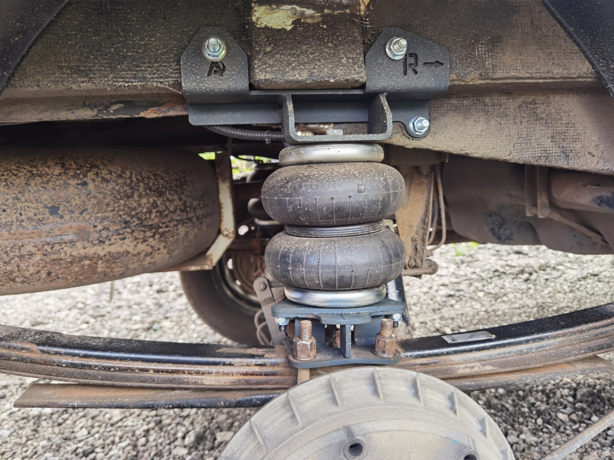 Комплект пневмоподвески устанавливается в дополнение к штатным рессорам и не вносит изменения в штатные элементы подвески. Следовательно, данный комплект не требует вносить изменения в ПТС автомобиля. Пневмоподушка ставится между рамой с рессорами на специальных крепежных пластинах, идущих в комплекте. Верхняя крепежная пластина ставится на раму в штатные отверстия, между крепления ставится дополнительная поперечная распорка для усиления рамы и распределения нагрузки. Нижняя крепежная пластина ставится на мост.