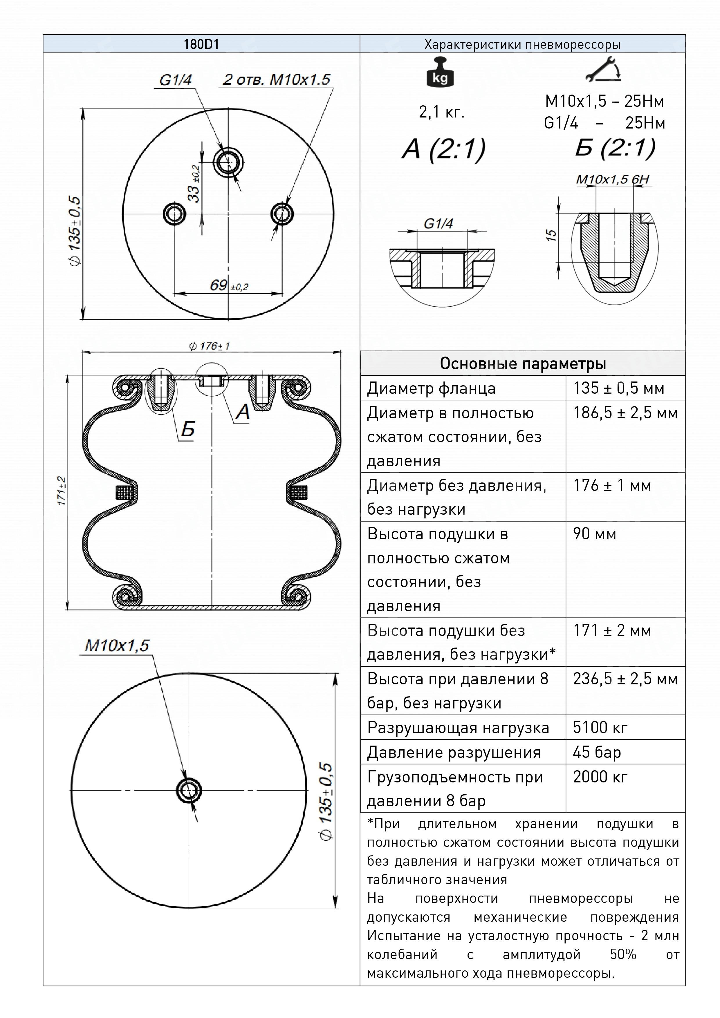 Пневматическая подушка 180D1, она же пневморессора, пневмобаллон, пневмоподушка – это РТИ (резинотехническое изделие) Российского производства, схожее по параметрам с зарубежными аналогами, но превосходящий в качестве. Данная пневматическая подушка выполнена в виде двойного сильфона.