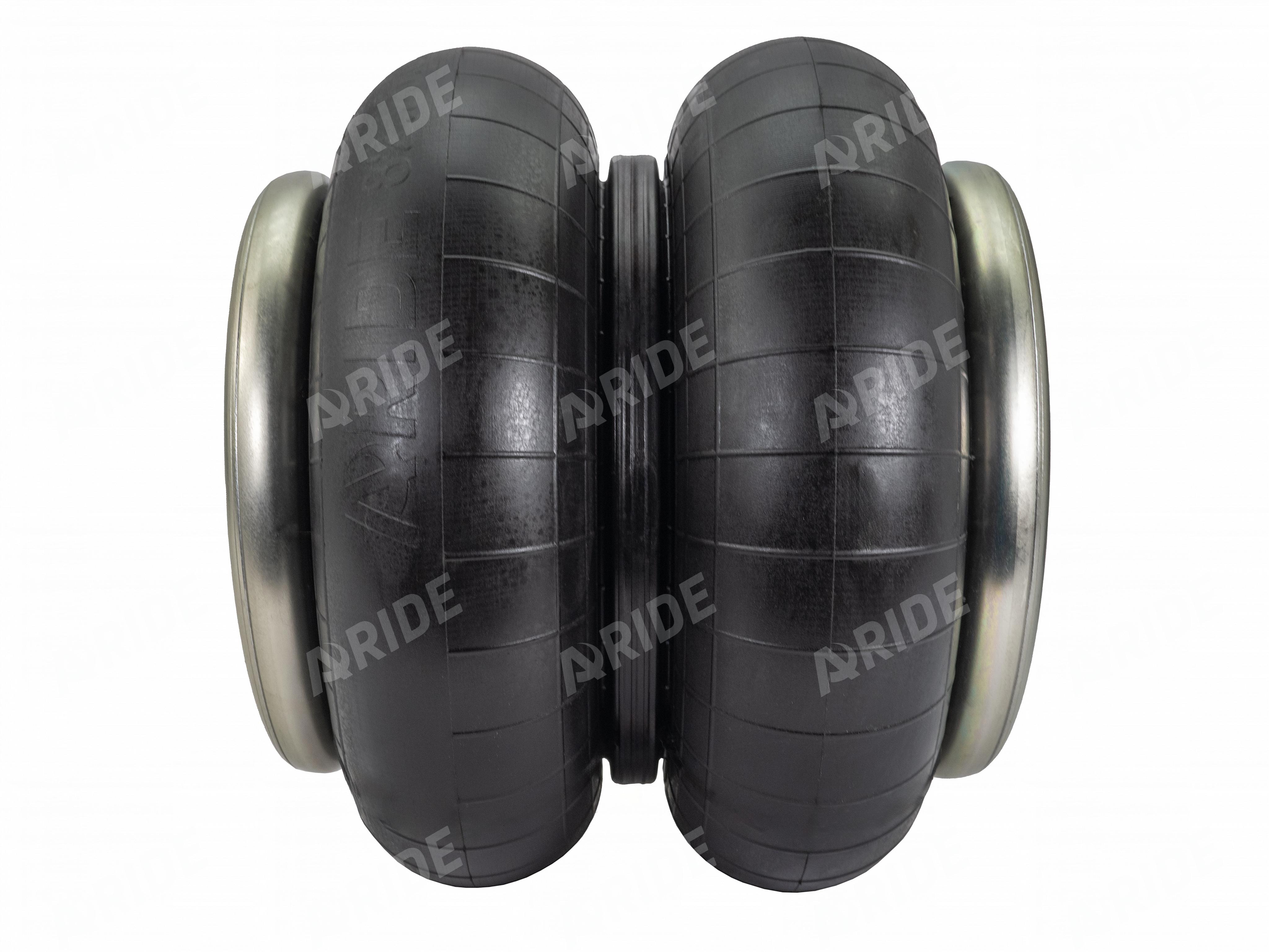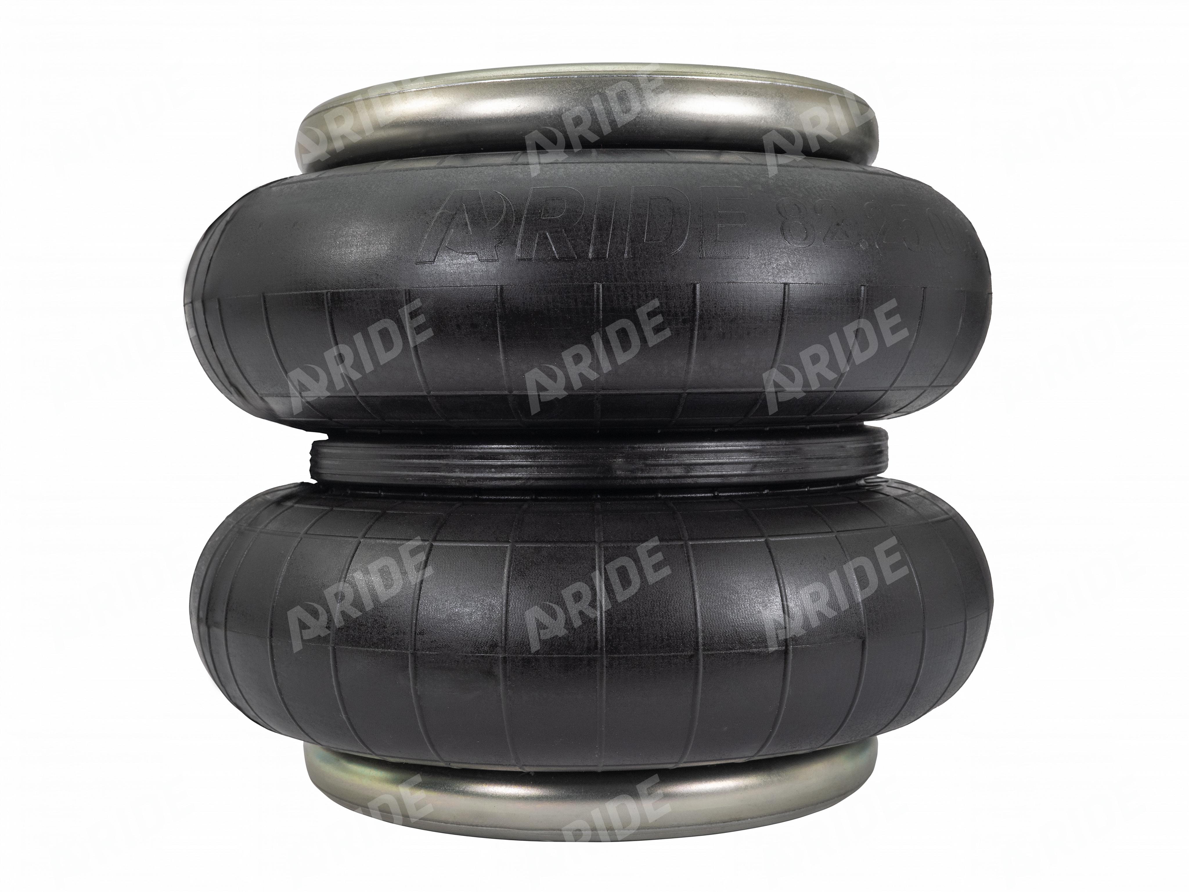 В качестве элементов, разделяющих пневмоподушку на секции, используются три цельнометаллических кольца. Два кольца расположены на верхней и нижней части, среднее кольцо располагается по центру, тем самым разделяя его на две части, что позволяет добиться больших углов наклона при её эксплуатации. Каждое из трёх металлических колец, надёжно впаяно в резиновую часть и скрыто от воздействия внешних агрессивных сред. Резина для пневмоэлемента изготавливается из высококачественного каучука, который не подвержен воздействию масла, бензина и других химических элементов. Такой состав изделия позволяет расширить температурный диапазон от -50 до +50 градусов по Цельсию.