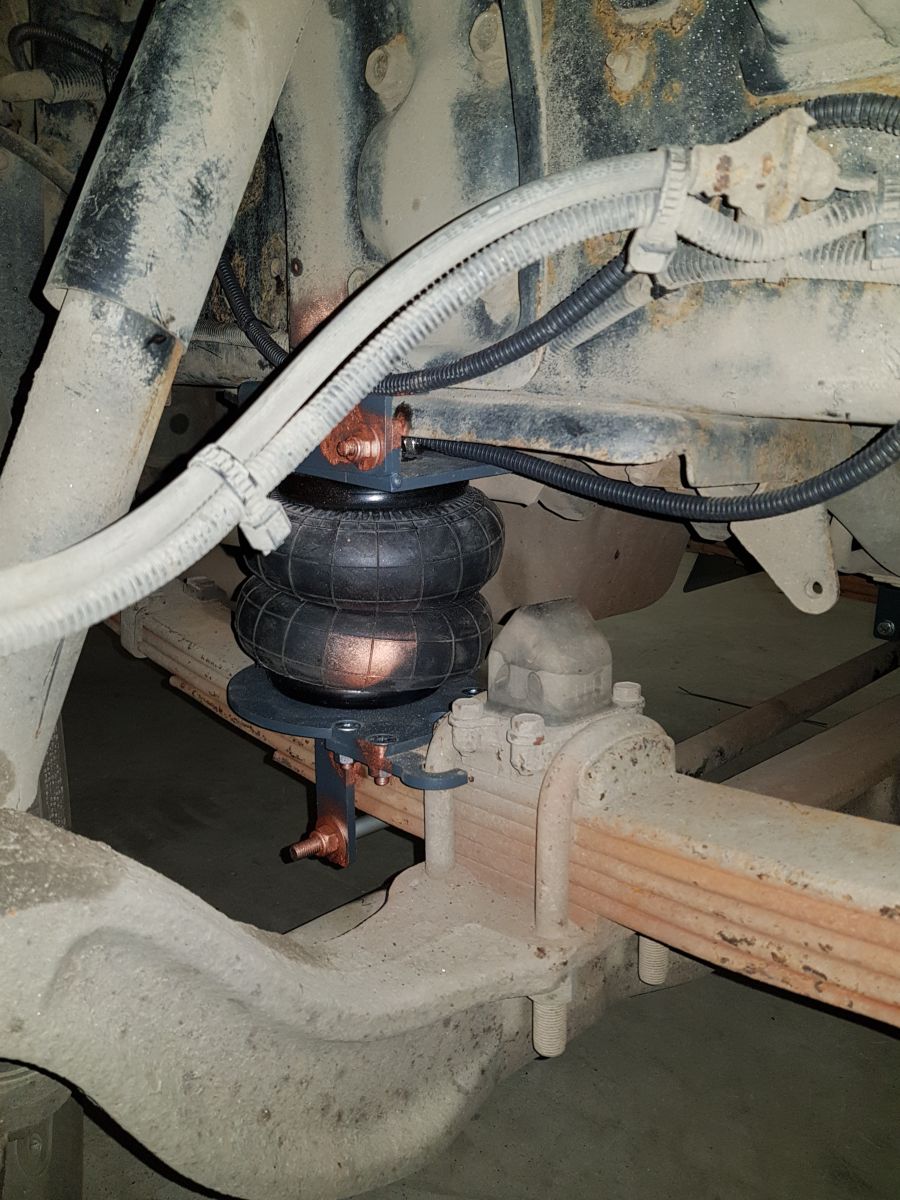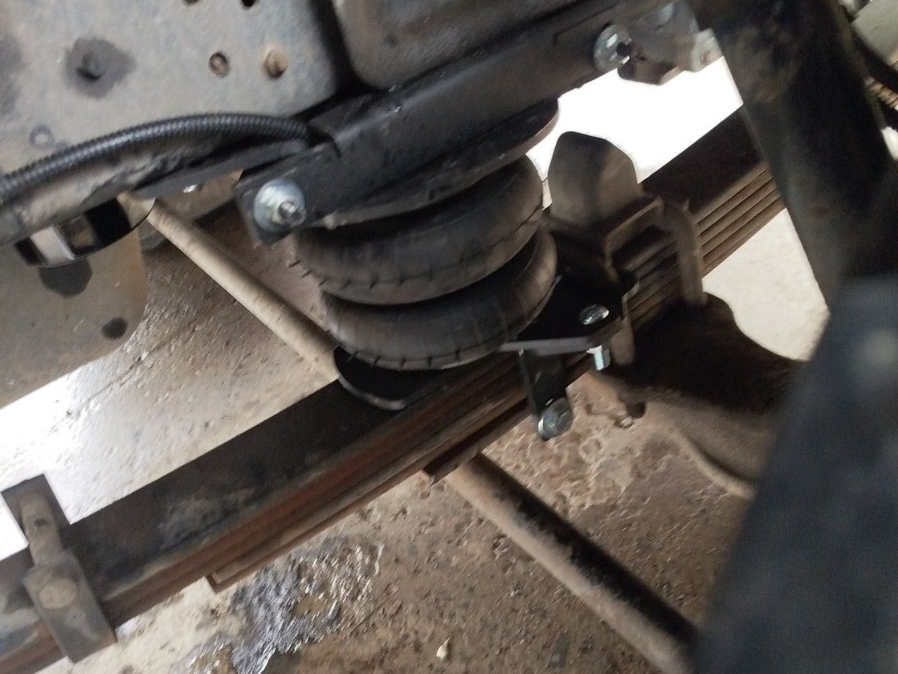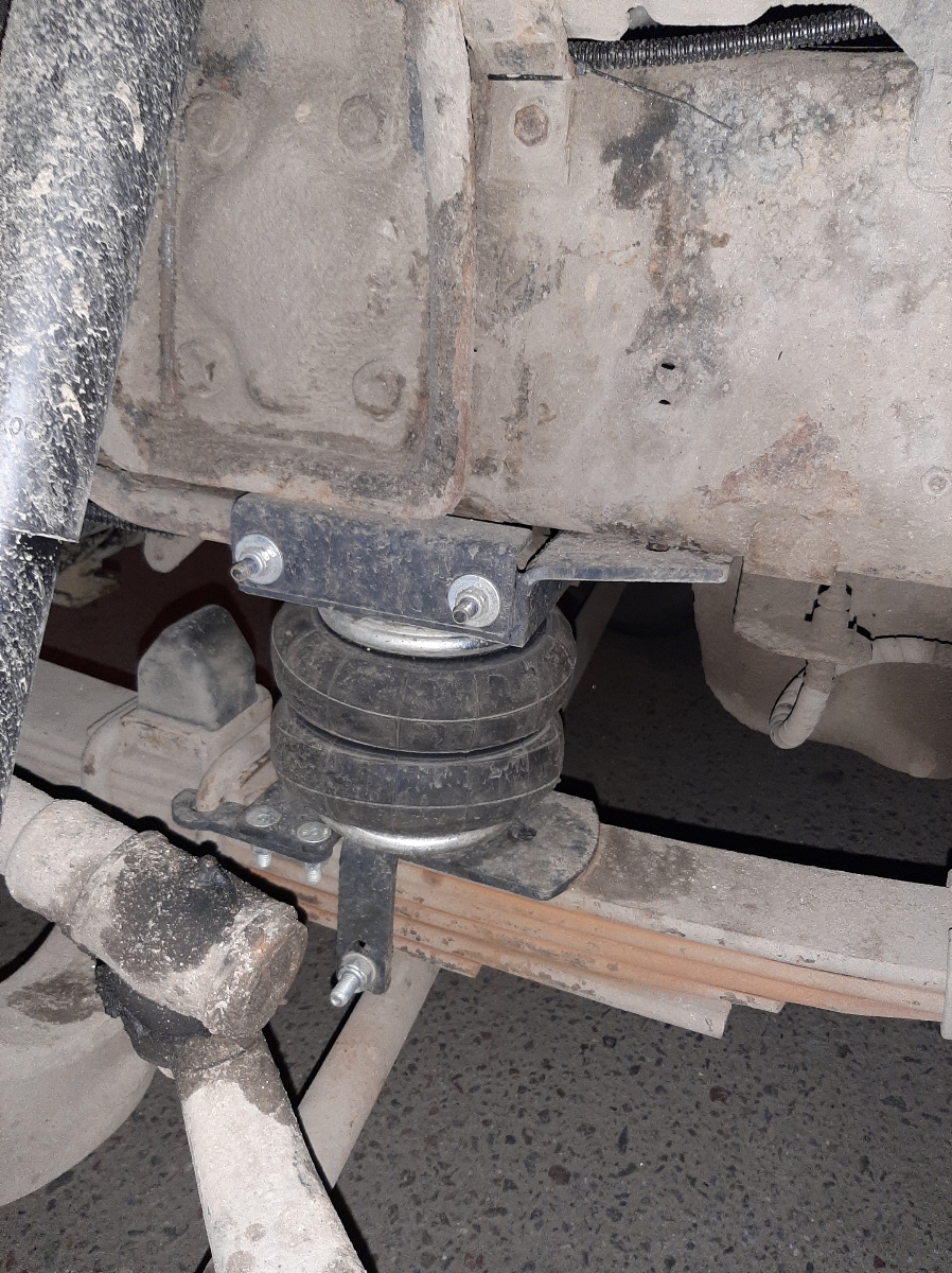 Комплект пневмоподвески устанавливается в дополнение к штатным рессорам и не вносит изменения в штатные элементы подвески. Следовательно, данный комплект не требует вносить изменения в ПТС автомобиля. Пневмоподушка ставится между рамой с рессорами на специальных крепежных пластинах, идущих в комплекте. Верхняя крепежная пластина ставится на раму в штатные отверстия, между крепления ставится дополнительная поперечная распорка для усиления рамы и распределения нагрузки. Нижняя крепежная пластина ставится на мост.