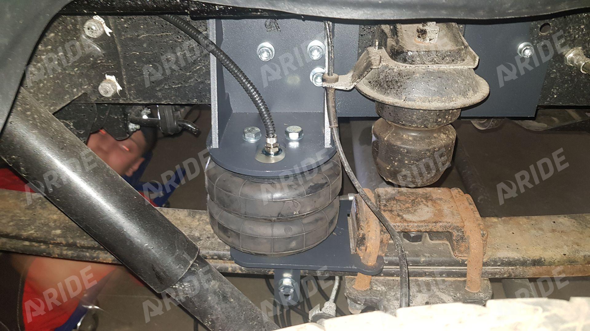 Комплект пневмоподвески устанавливается в дополнение к штатным рессорам и не вносит изменения в штатные элементы подвески. Следовательно, данный комплект не требует вносить изменения в ПТС автомобиля. Пневмоподушка ставится между рамой с рессорами на специальных крепежных пластинах, идущих в комплекте. Верхняя крепежная пластина ставится на раму в штатные отверстия, между крепления ставится дополнительная поперечная распорка для усиления рамы и распределения нагрузки. Нижняя крепежная пластина ставится на мост.