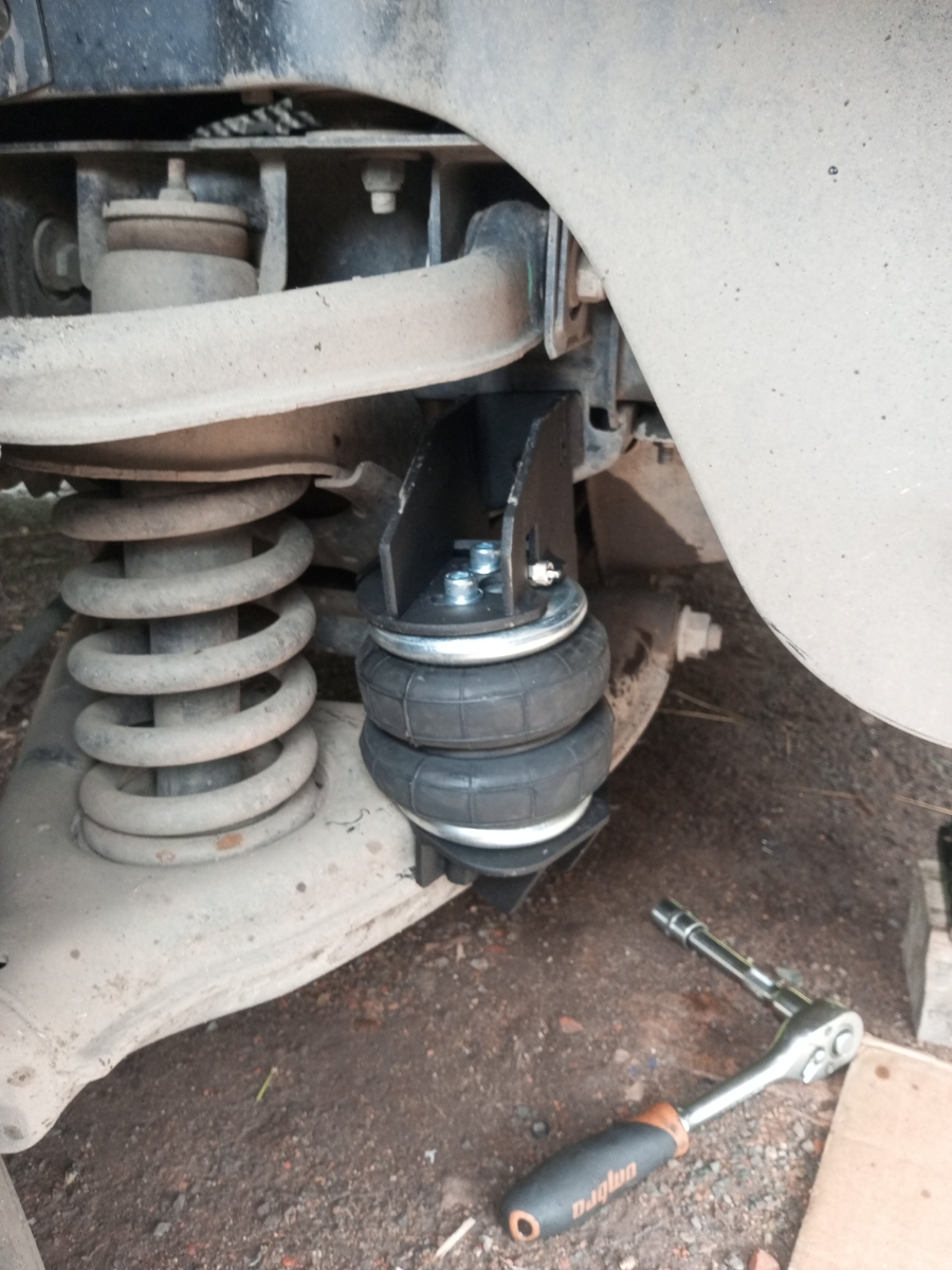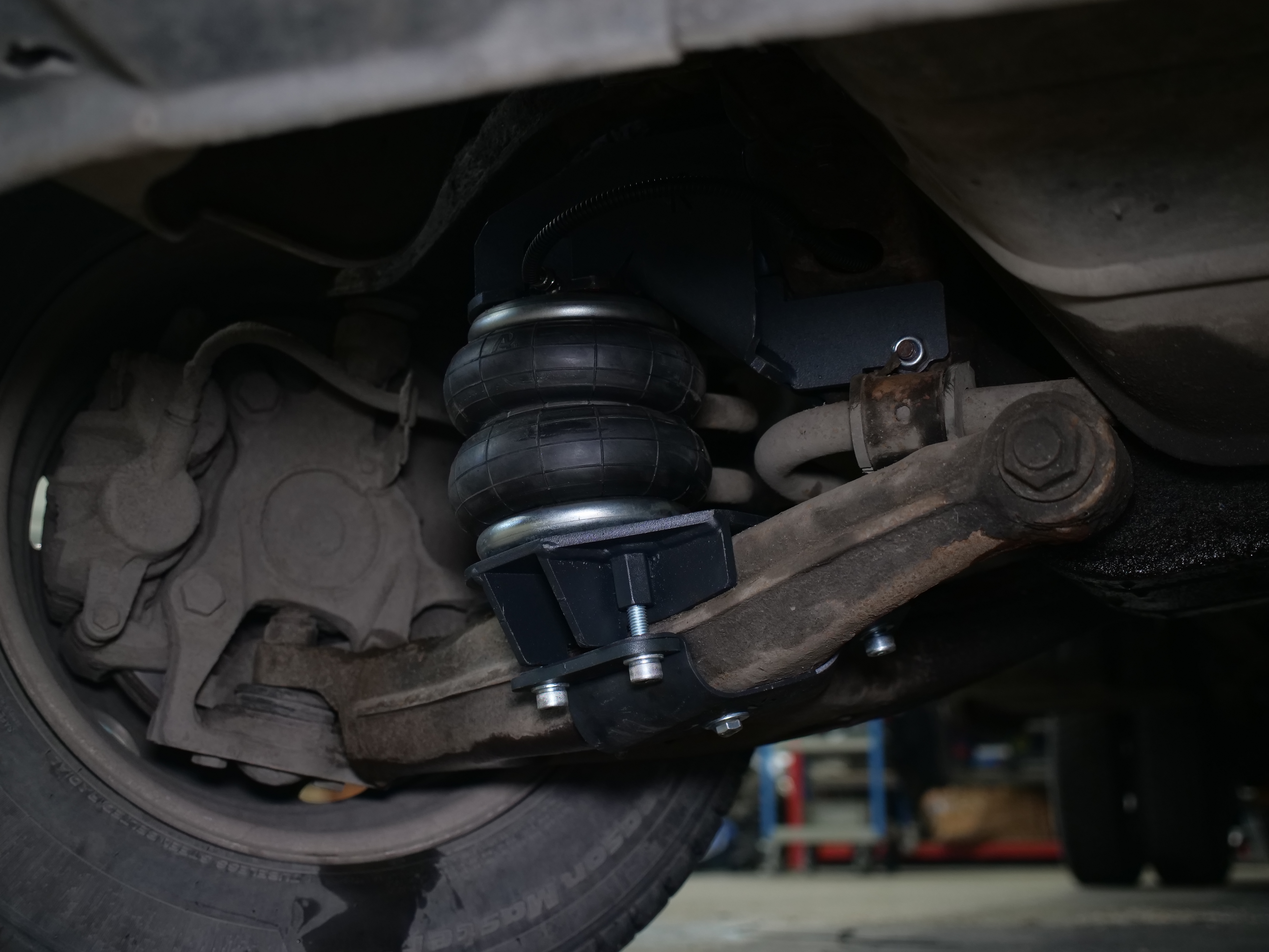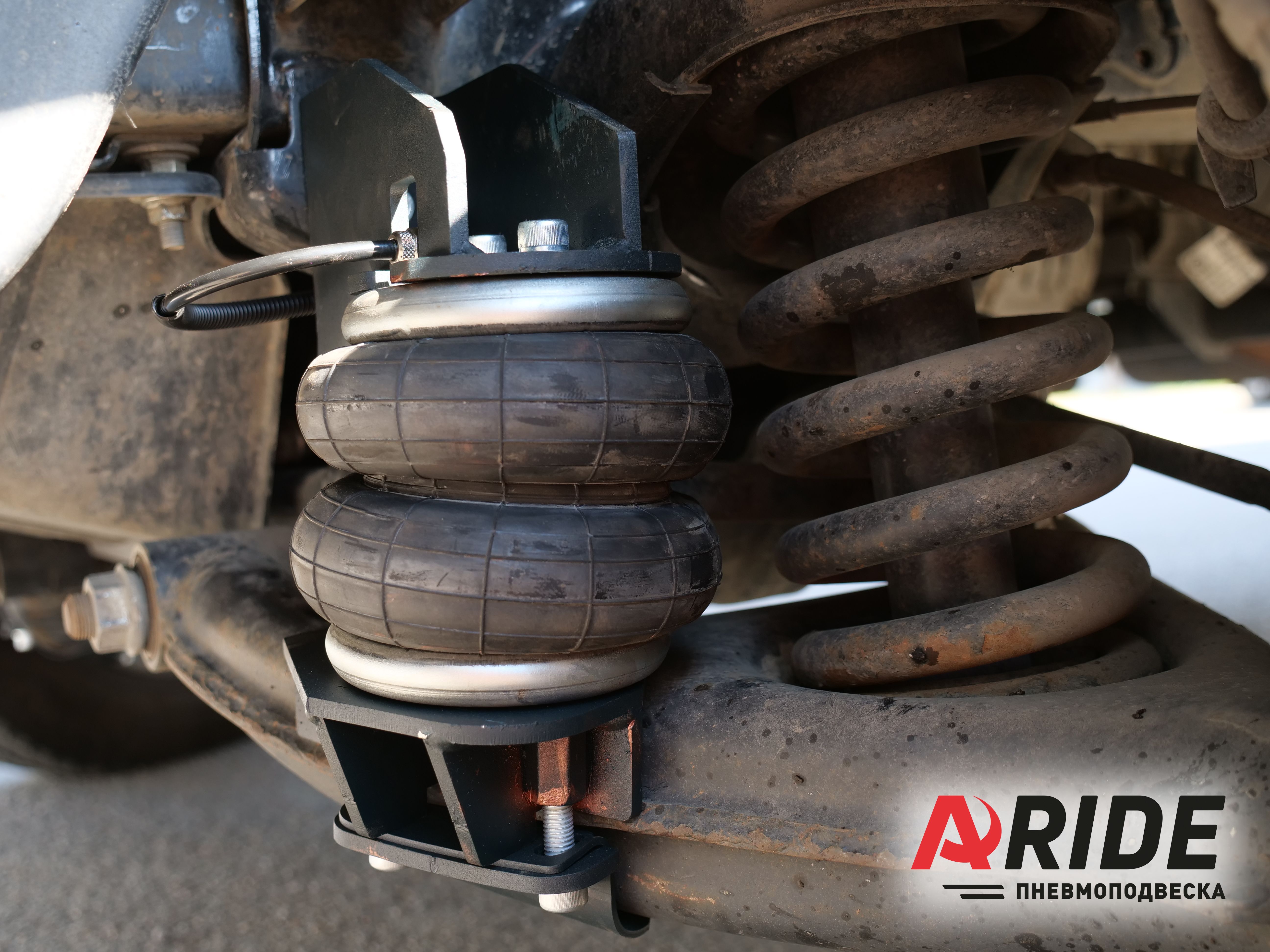 Комплект пневматической подвески разработан специально для автомобиля и включает в себя два пневмоэлемента, кронштейны для крепления к раме и рычагу, крепеж, фурнитуру для накачки от внешнего компрессора, инструкцию по установки своими руками.