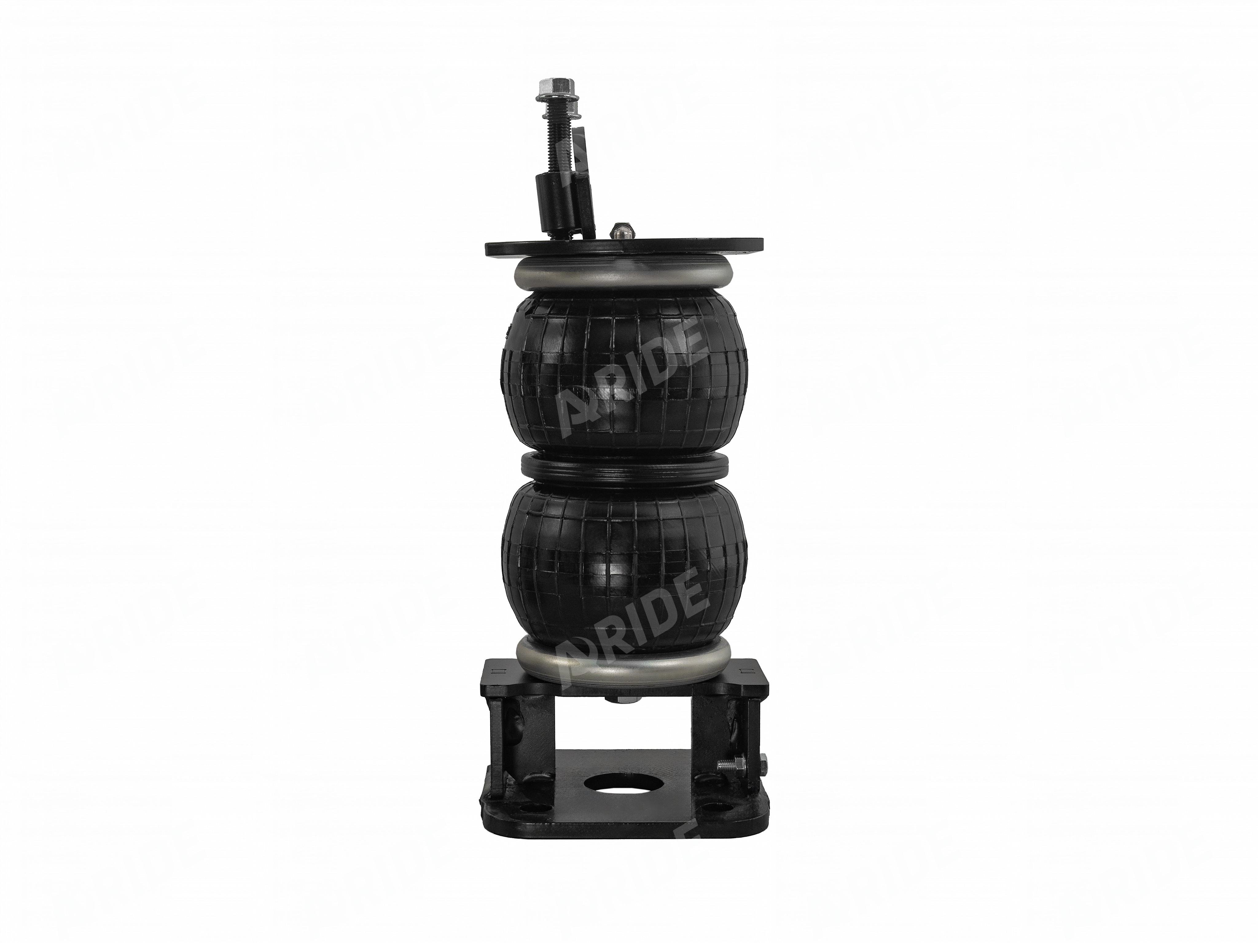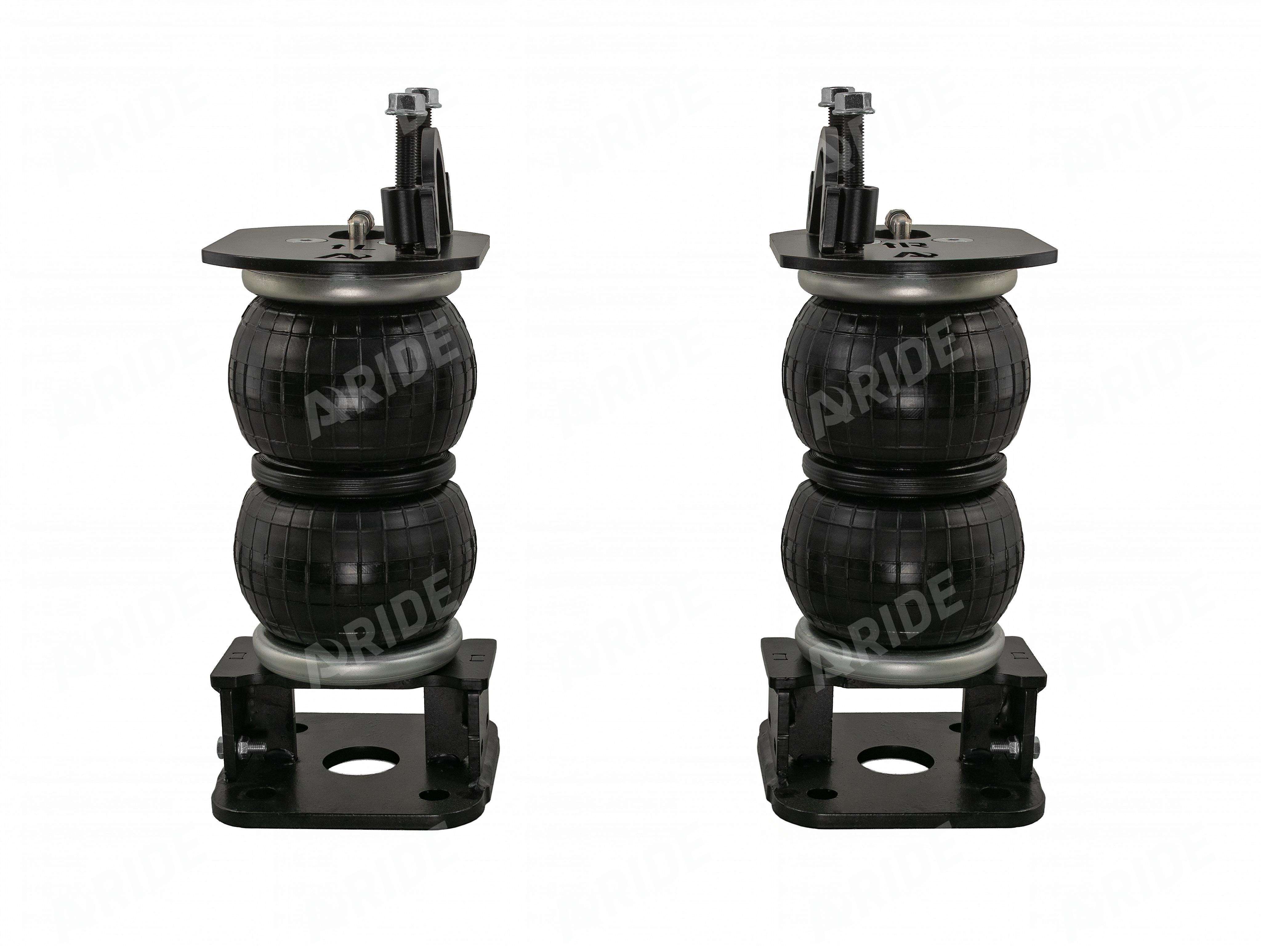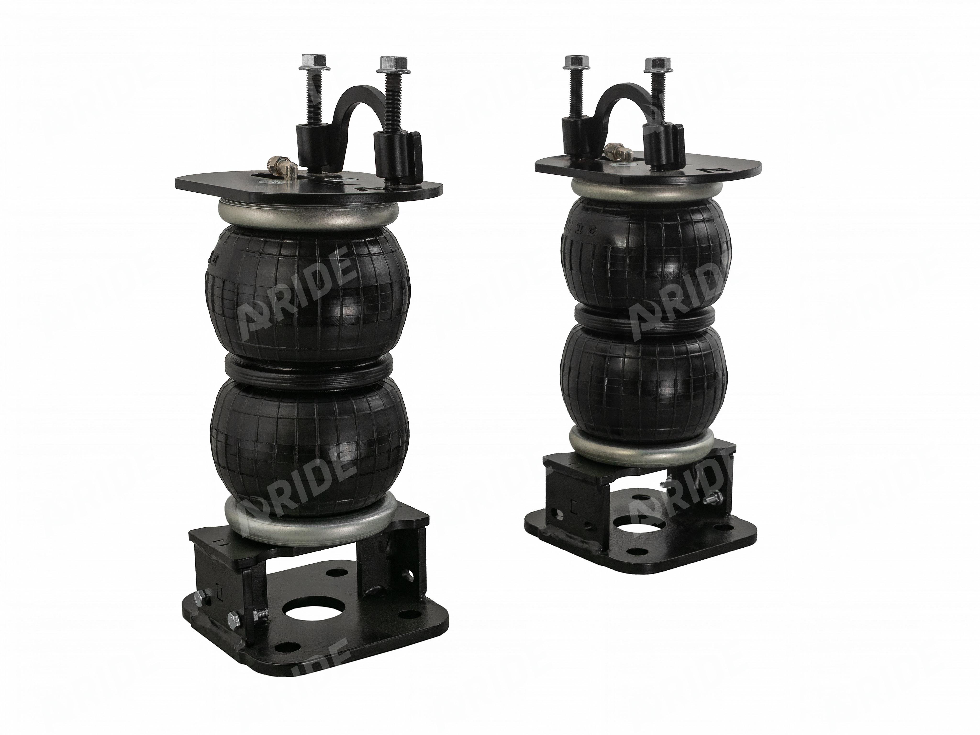 Комплект пневматической подвески разработан специально для автомобиля и включает в себя два пневмоэлемента, кронштейны для крепления к раме и мосту, крепеж, фурнитуру для накачки от внешнего компрессора, инструкцию по установки своими руками.