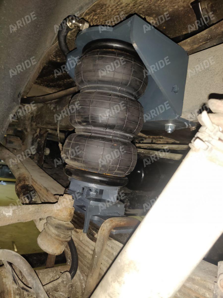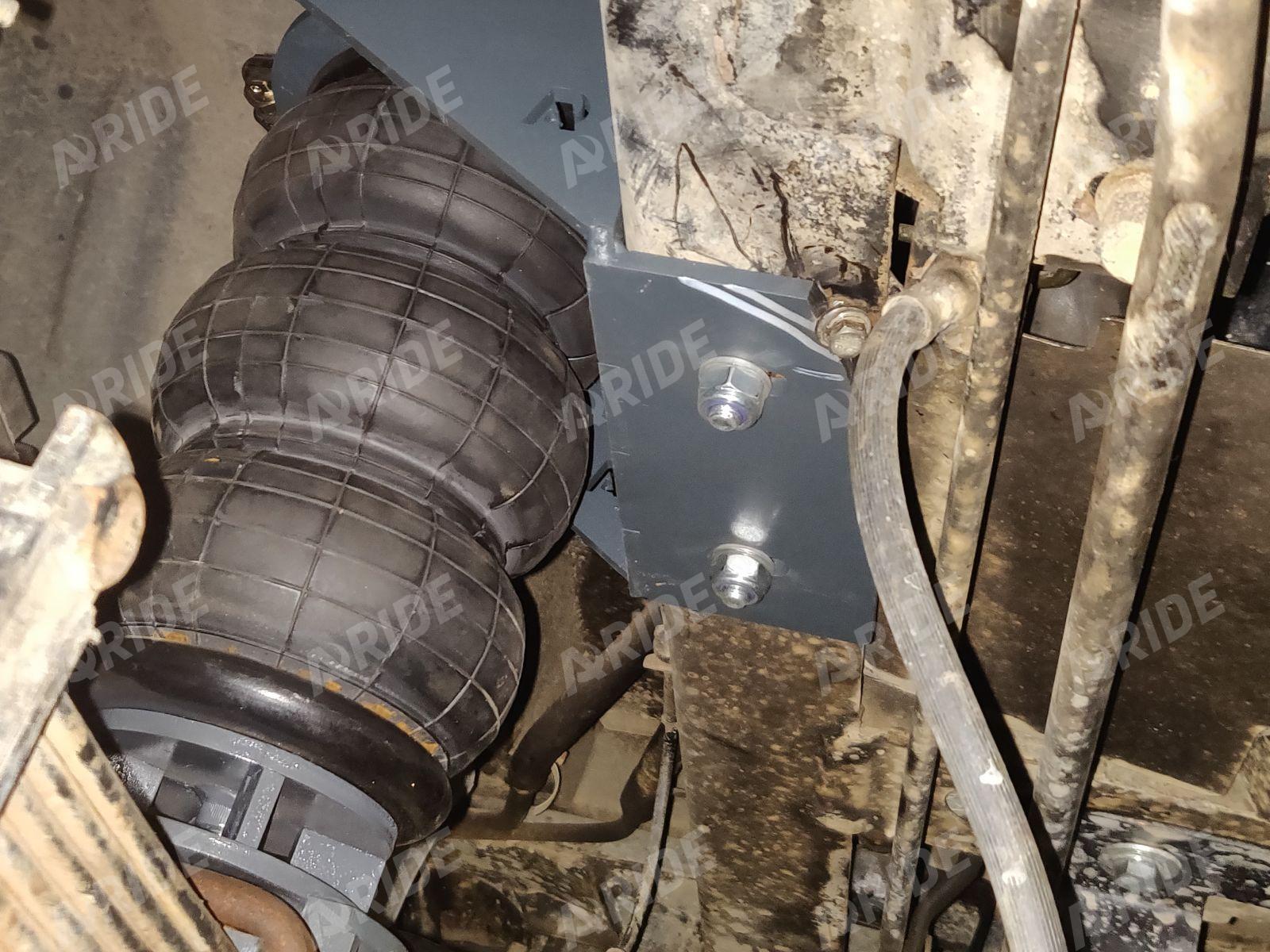 Комплект пневмоподвески устанавливается в дополнение к штатным рессорам и не вносит изменения в штатные элементы подвески. Следовательно, данный комплект не требует вносить изменения в ПТС автомобиля. Пневмоподушка ставится между рамой с рессорами на специальных крепежных пластинах, идущих в комплекте. Верхняя крепежная пластина ставится на раму в штатные отверстия, между крепления ставится дополнительная поперечная распорка для усиления рамы и распределения нагрузки. Нижняя крепежная пластина ставится на мост.