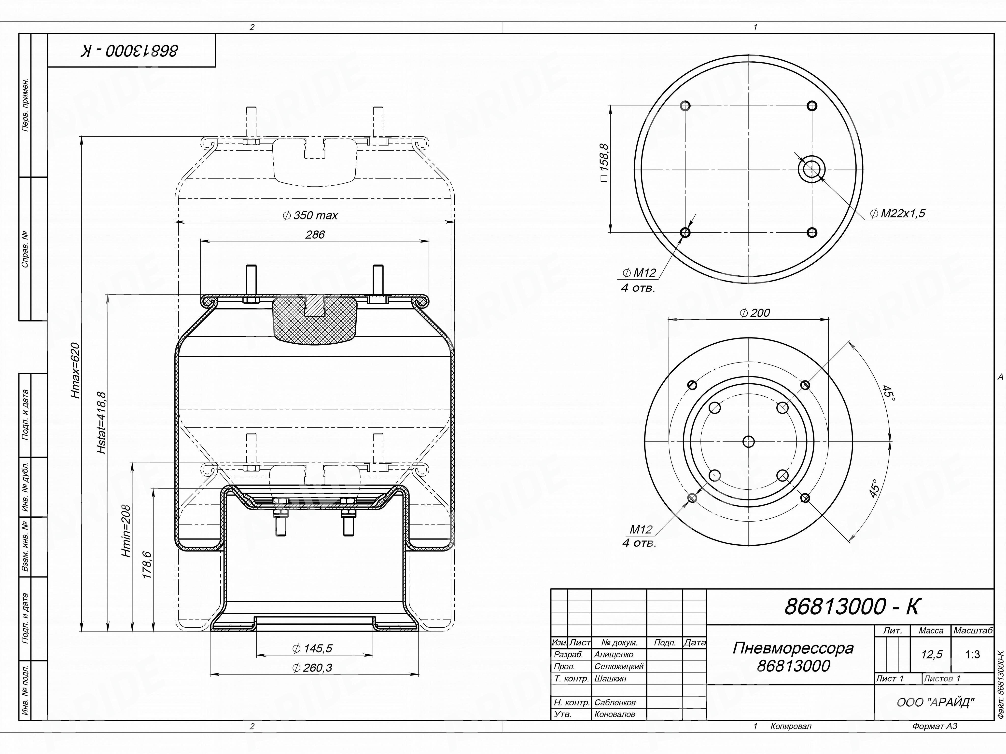 Характеристики - Пневморессора 86813000-К в сборе со стальным стаканом