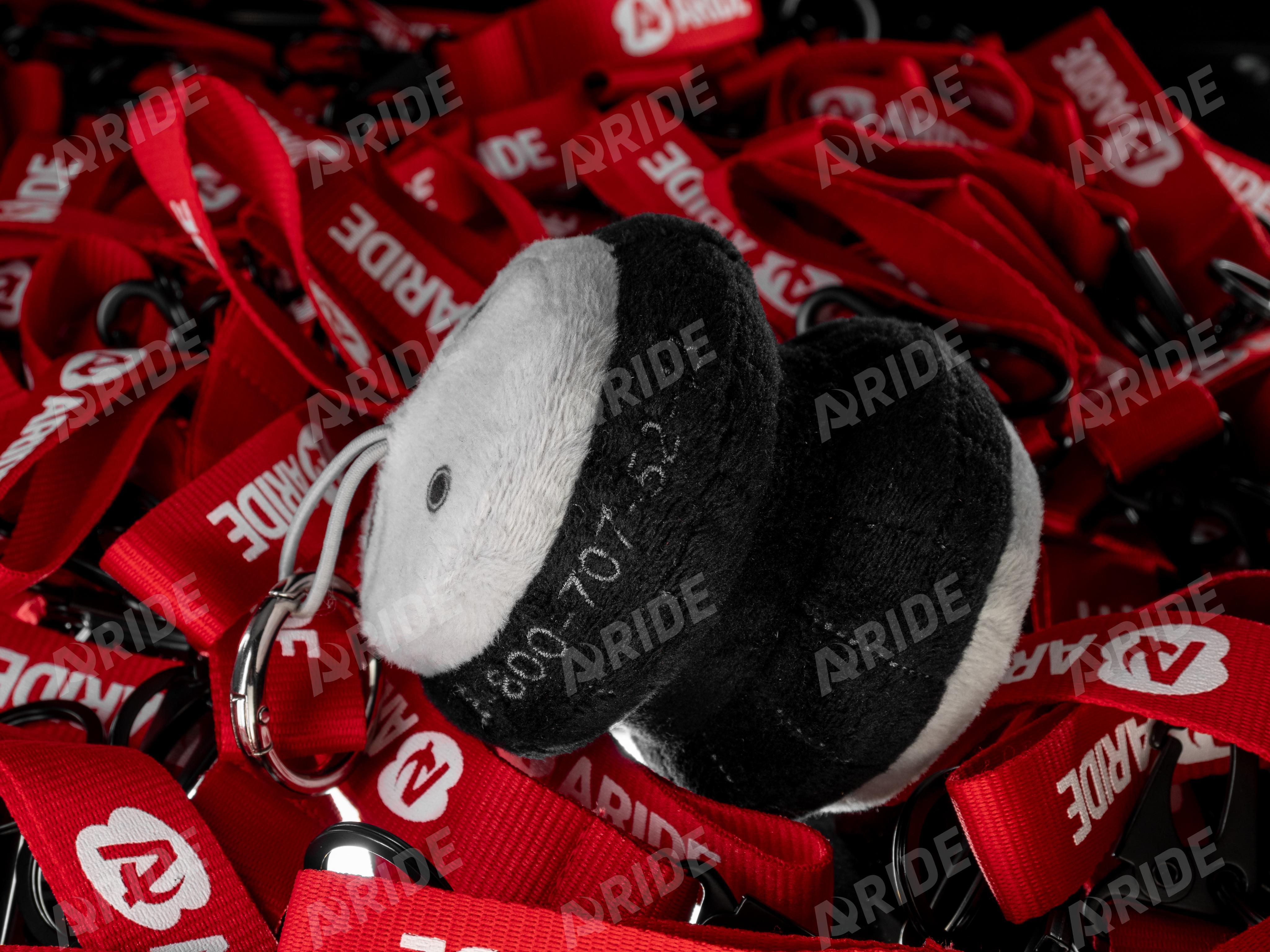 Игрушка имеет прорезиненную петлю и металлическую фурнитуру. Это позволяет повесить её на зеркало заднего вида или на рюкзак.