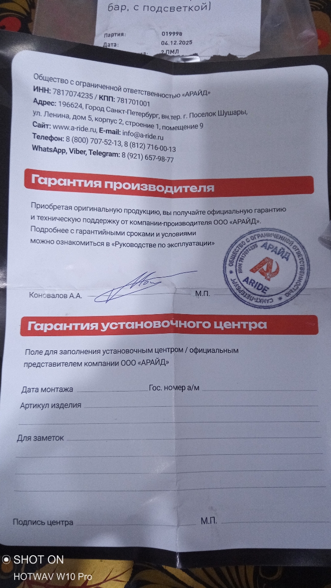 1 ГОД гарантии от производителя