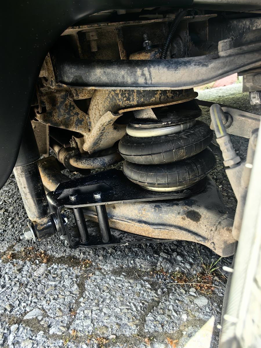 Комплект пневмоподвески устанавливается взамен заводских пружин. Следовательно, данный комплект не требует вносить изменения в ПТС автомобиля. Пневмоподушка ставится между подрамником и рычагами на специальных крепежных пластинах, идущих в комплекте. Верхняя крепежная пластина ставится в подрамник в штатные отверстия. Нижняя крепежная пластина ставится на рычаг.