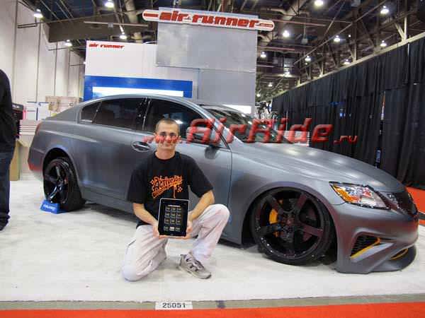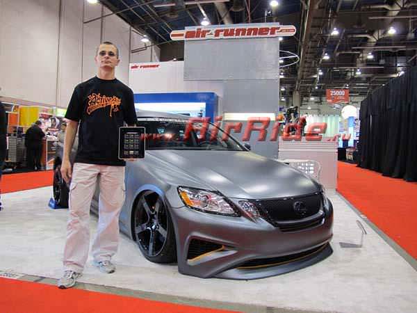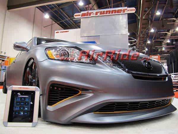 Дебют контроллера Эктив Эйр прошел на автомобильной выставке SEMA в Лас Вегасе (США) в 2010 году. "Пробный заезд" на подиум был проделан совместно с нашими японскими партнёрами Air Runner на демонстрационном автомобиле Lexus GS серии. От желающих "ткнуть пальцем" в экран i-pad не было отбоя :-). В период всего времени прохождения выставки, пневмоподвеска автомобиля покорно исполняла команды посетителей, общаясь через Apple устройство. В качестве "переводчика" команд, адресованных пневмоподвеске, являлся наш контроллер ActiveAir.