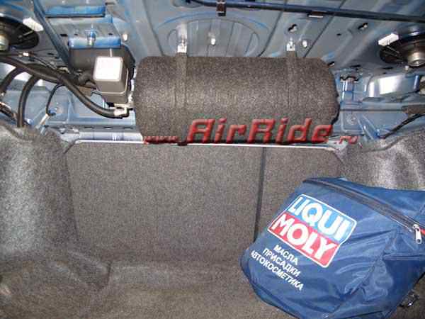 Автомобиль может весело подниматься и опускаться, теперь ему не страшен ни один бордюр. Что примечательно, багажник свободен - мы хорошо спрятали компрессор и ресивер. 2х-контурная ресиверная система. Стоимость проекта 135000 руб.