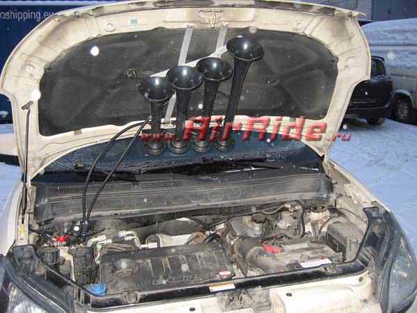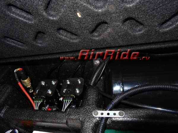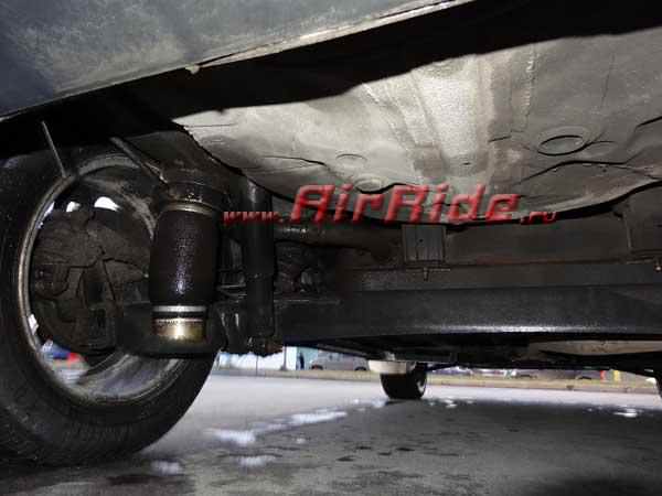 Машина уверенно штурмует глубокую колею и перешагивает высокие бордюры. Разделение управления пневмоподвеской на 4 контура обеспечивает уверенное прохождение поворотов на скорости. При посадке 3х пассажиров на заднее сидение и загрузке багажного отсека, проседание оси компенсируется увеличением давления в задней осевой пневматике. Испытания дальней поездкой на выставку из Петербурга в Москву с загрузкой около 400 кг выставочного оборудования доказали надёжность конструкции. В качестве дополнительных опций было установлено: Пневматический сигнал HornBlasters Shocker XL Train Horn под капот, подкачка колёс. Автомобиль принадлежит сотруднику компании ЭйрРайд. Оснащение пневмоподвеской и системой управления по полной программе и на высоком уровне качества.
