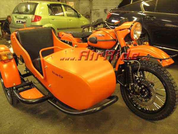 Пневматическая подвеска на мотоцикл - этим уже никого не удивишь. Однако есть ещё те, которым это возможно будет интересно. Представляем проект пневматической подвески на новые модификации Ирбитского мотоциклетного завода. Почему именно он - да какой дали, такой и "прокачали" :-)) Нам ведь действительно не сложно "надуть" какое-нибудь железо и вот вам результат. Заказ разработки пневмокомплекта и сам мотоцикл был предоставлен компанией ООО "Райдерус". На мотоцикл было установлено 3 пневматических амортизатора (2 на заднюю ось мотоцикла и 1 на коляску.) и система управления AirRide AR 2-120V (предшественник системы AirRide AR 2-120VH). В качестве доп. опции был установлен разъём для подкачки колес.