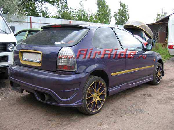 На автомобиль Honda Civic VI 1996 г.в.установлена полная пневмоподвеска. Система управления AirRide AR 2-200PS. Теперь не стоит переживать за дорогой пластиковый обвес, т.к. автомобиль способен подняться на максимальную высоту клиренса до 16 см. Эффект максимального занижения тоже достигнут. Проект 2010г. В 2013 году была произведена полная диагностика системы. 95% компонентов в приличном состоянии при условии отсутствия планового обслуживания в течении всего срока эксплуатации. 5% дефектов - нарушение герметичности соединений.