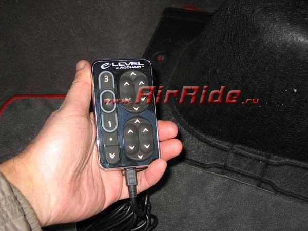 Все компоненты системы идеально расположились в нише багажного отсека рядом с аккумоляторной батареей. Автомобиль не имеет никаких признаков наличия пневмосистемы. Управление осуществляется с помощью проводного пульта с функциями программирования и миниатюрного брелка Д/У.