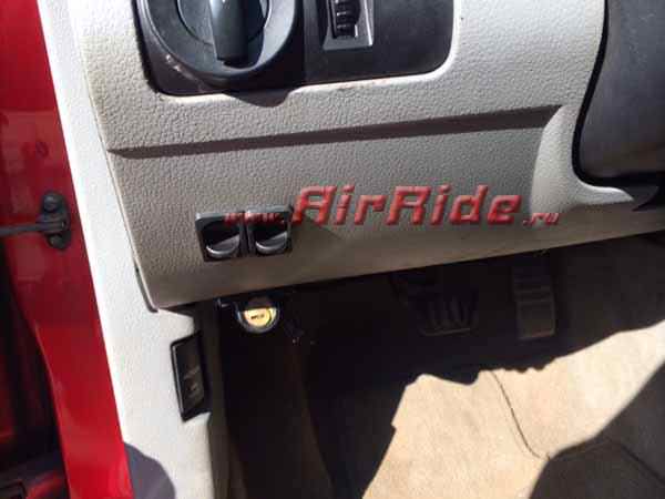 На автомобиле был установлен полный комплект пневматической подвески, сконструированный в мастерской компании ЭйрРайд. Управление осевой пневматикой осуществляет простейшая система AirRide AR 2-150PS. Через 4 года "попросился в утиль" ресивер. Он просто проржавел. Замена ресивера, полная диагностика пневмосистемы и автомобиль снова готов к повседневной эксплуатации. Для строительства осевой пневматики были использованы пневмоэлементы тип "сильфон". Технология старейшая и на данный момент применяется только на отдельных проектах, где требуется усиление по подъёму или при короткоходных амортизаторах.