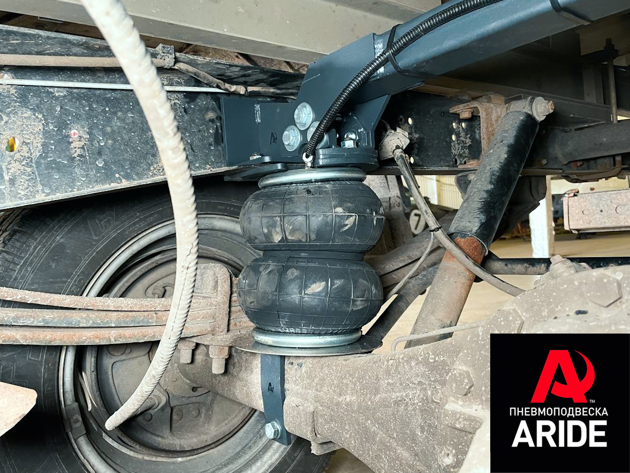 Пневмоподвеска устанавливается на заднюю ось, верхние кронштейны в раму, а нижние на мост. Всё крепится через заводские отверстия. Для установки комплекта не требуются никакие сварочные работы. Всё исключительно но болтовых соединениях.