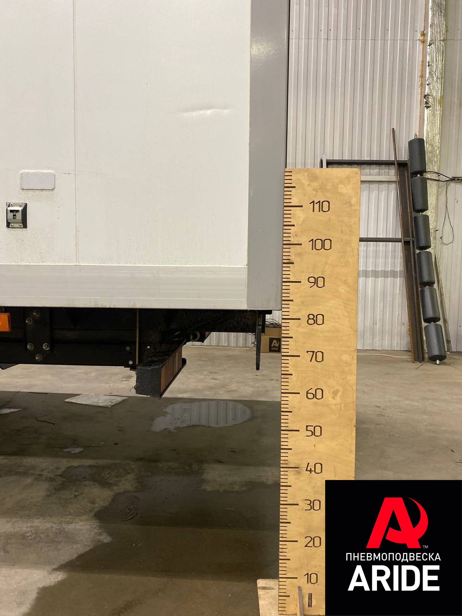 Ну и самое главное, это результат проделанной работы. Его можно продемонстрировать по высоте подъёма заднего свеса. Когда машина приехала к нам, высота была по крайней точке 82,5 см, после установки пневмоподвкски, нам удалось добиться полноценных 95см.