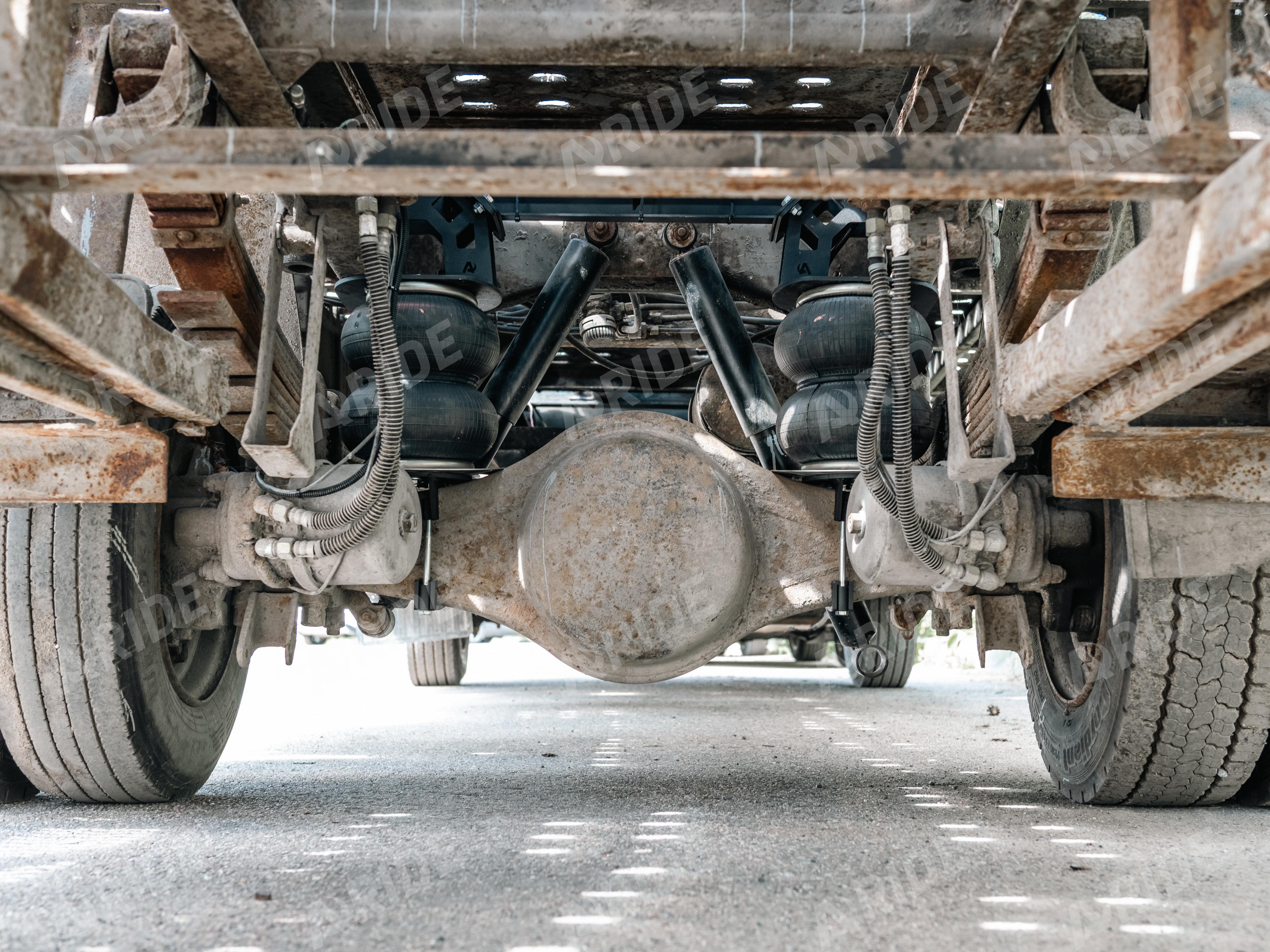 В данном проекте мы вам покажем готовый проект по установке пневмоподушек на Валдай эвакуатор. Так как автомобиль категории С, то и загрузка у него может быть большая. Установленная вспомогательная пневматическая подвеска позволит не только разгрузить заводские рессоры и восстановить заводскую грузоподъёмность автомобиля, но так же даст возможность отрегулировать клиренс автомобиля, а это очень важный фактор для эвакуатора, так как он имеет большой задний свес. Данный комплект пневматической подвески позволяет компенсировать до 4000 нагрузки с задней оси, за счёт мощных пневматических подушек Aride 250/2.