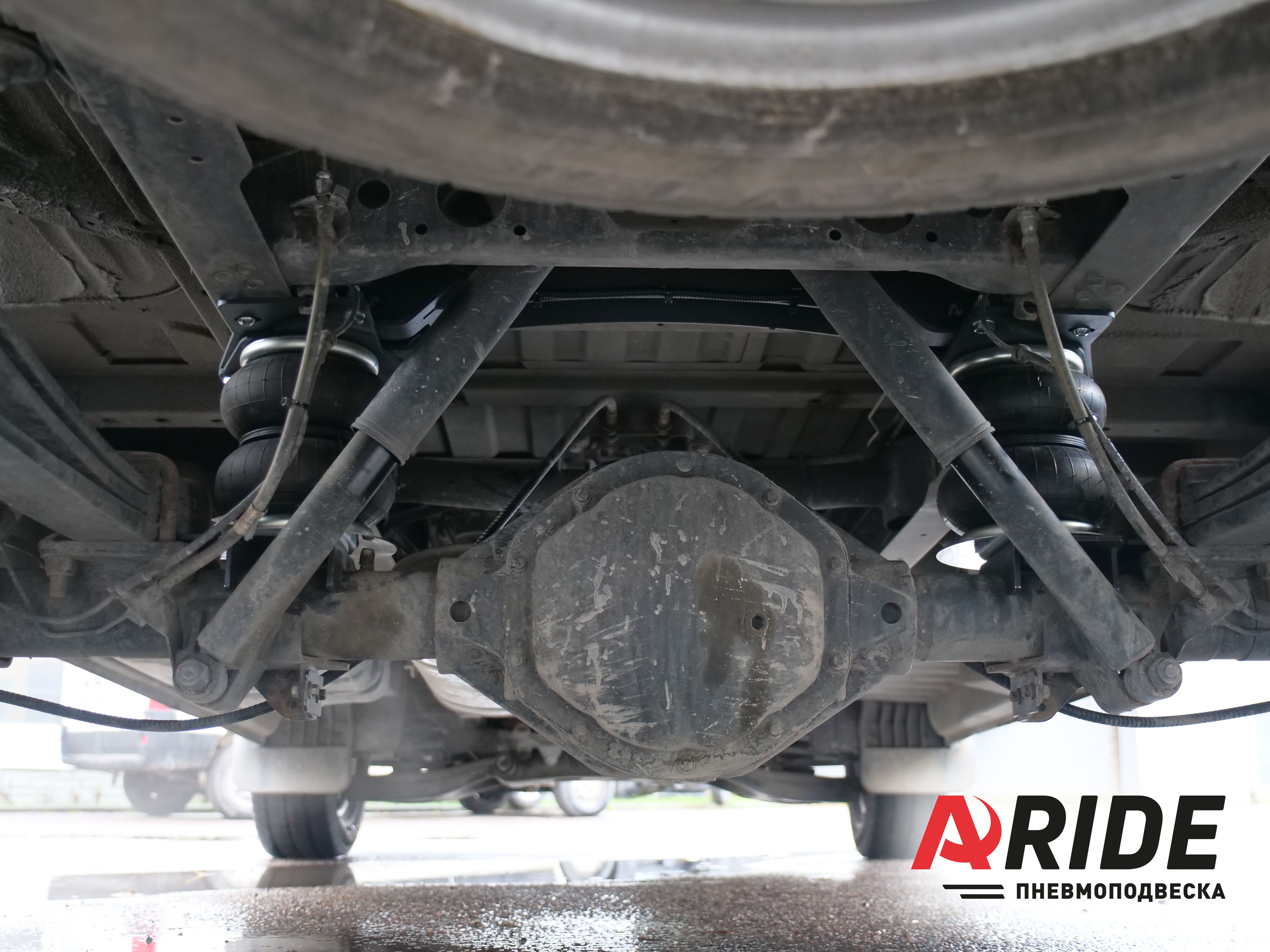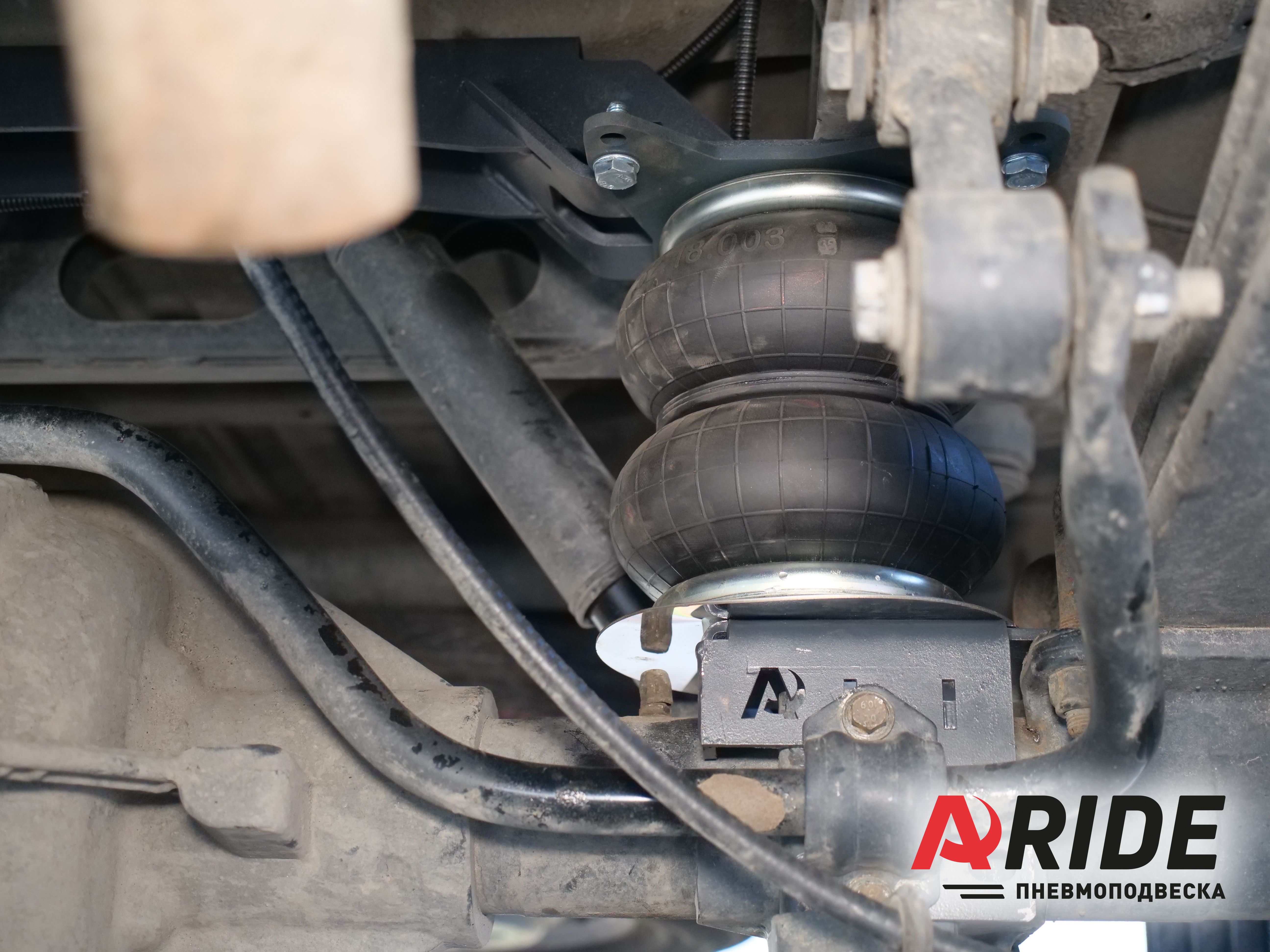 Как это принято, комплект состоит из двух пневмоэлементов 180D1, верхних и нижних кронштейнов, а так же поперечного усилителя. Верхний кронштейны устанавливаются на раму, и крепятся через заводские отверстия для отбойника. Нижние кронштейны устанавливаются на мост и притягиваются к нему через отверстия для крепления стабилизатора. При такой компоновке, удаётся снять большую часть нагрузки с рессор. Но безусловно правильным решением будет, чтобы рессоры работали в паре с пневмоэлементами. Для равномерного распределения нагрузки.
