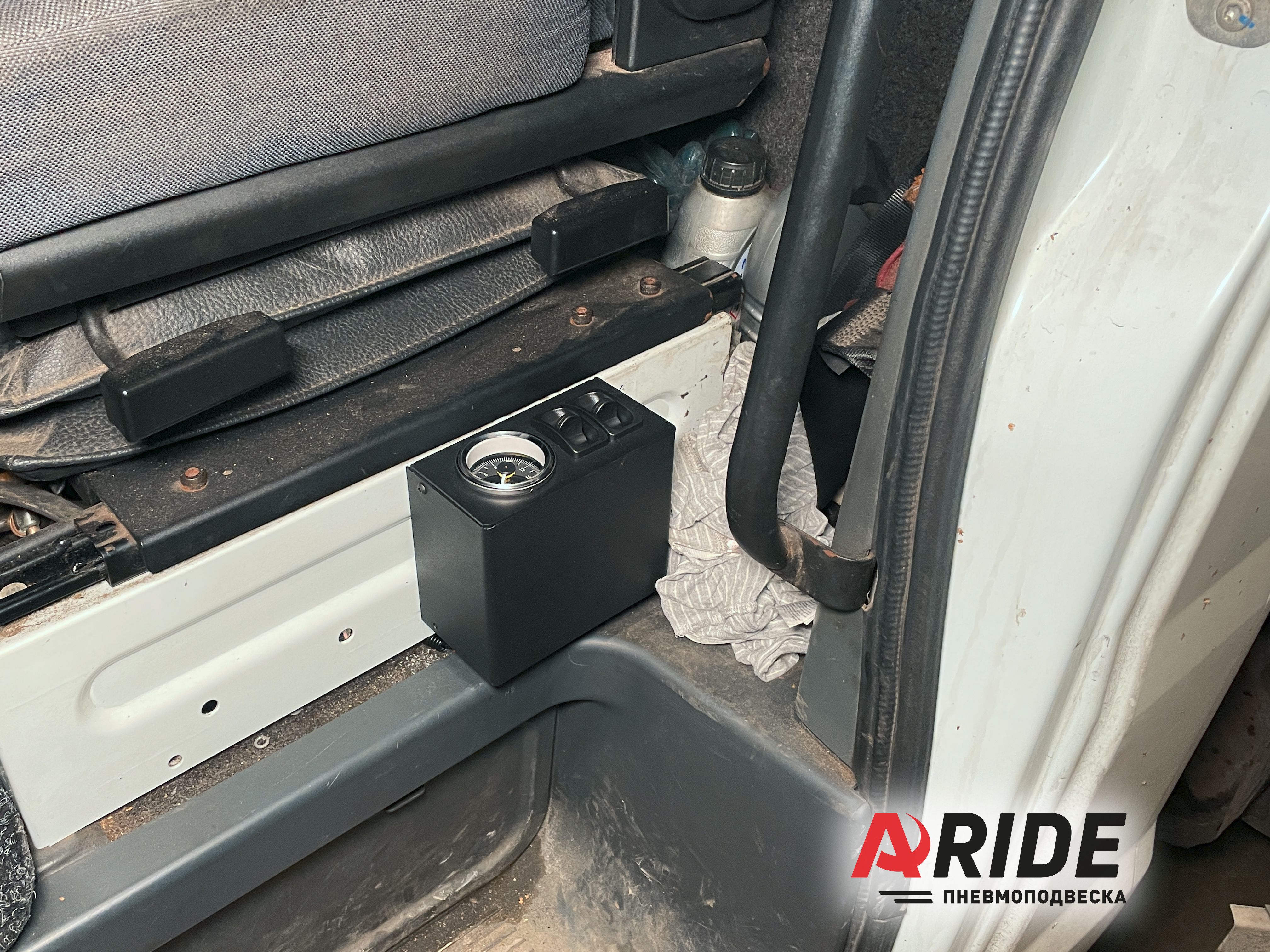 Управление реализовано за счёт двухконтурной системы 2.ОБ.ПС. Данная система подключается к заводскому воздушному ресиверу, находящемуся под кабиной. Система состоит из двухстрелочного манометра с подсветкой и двух пневматических клавиш, именно за счёт них происходит спуск и накачка давления в пневмоподушки.