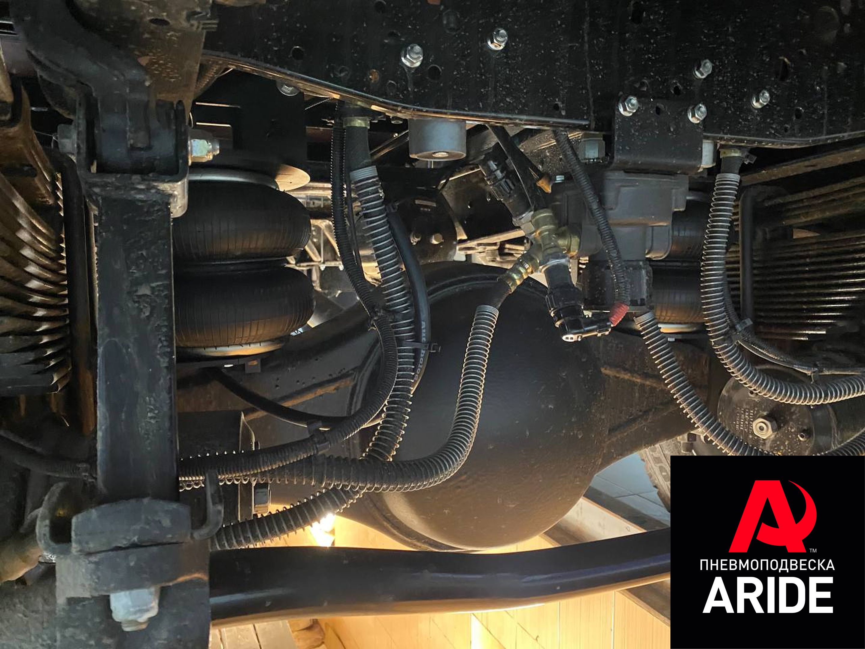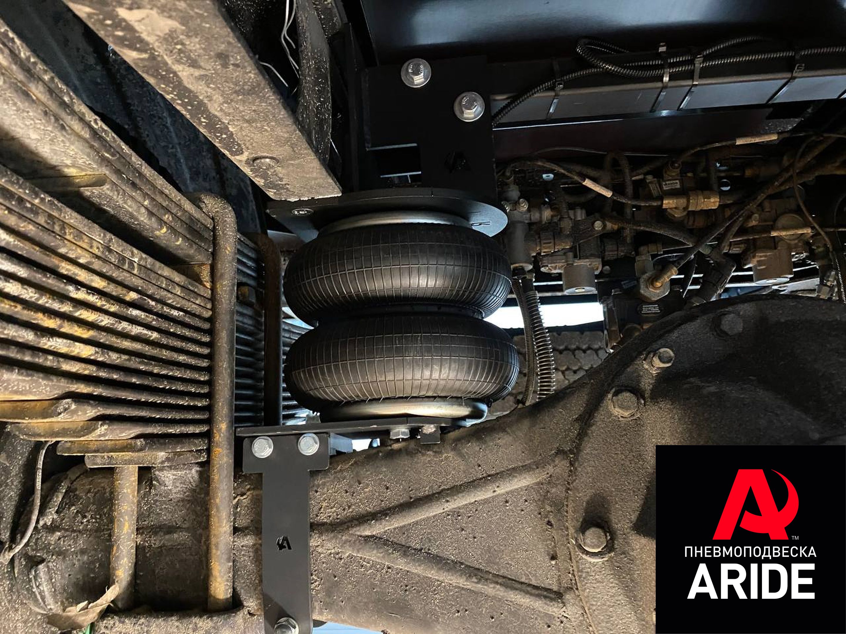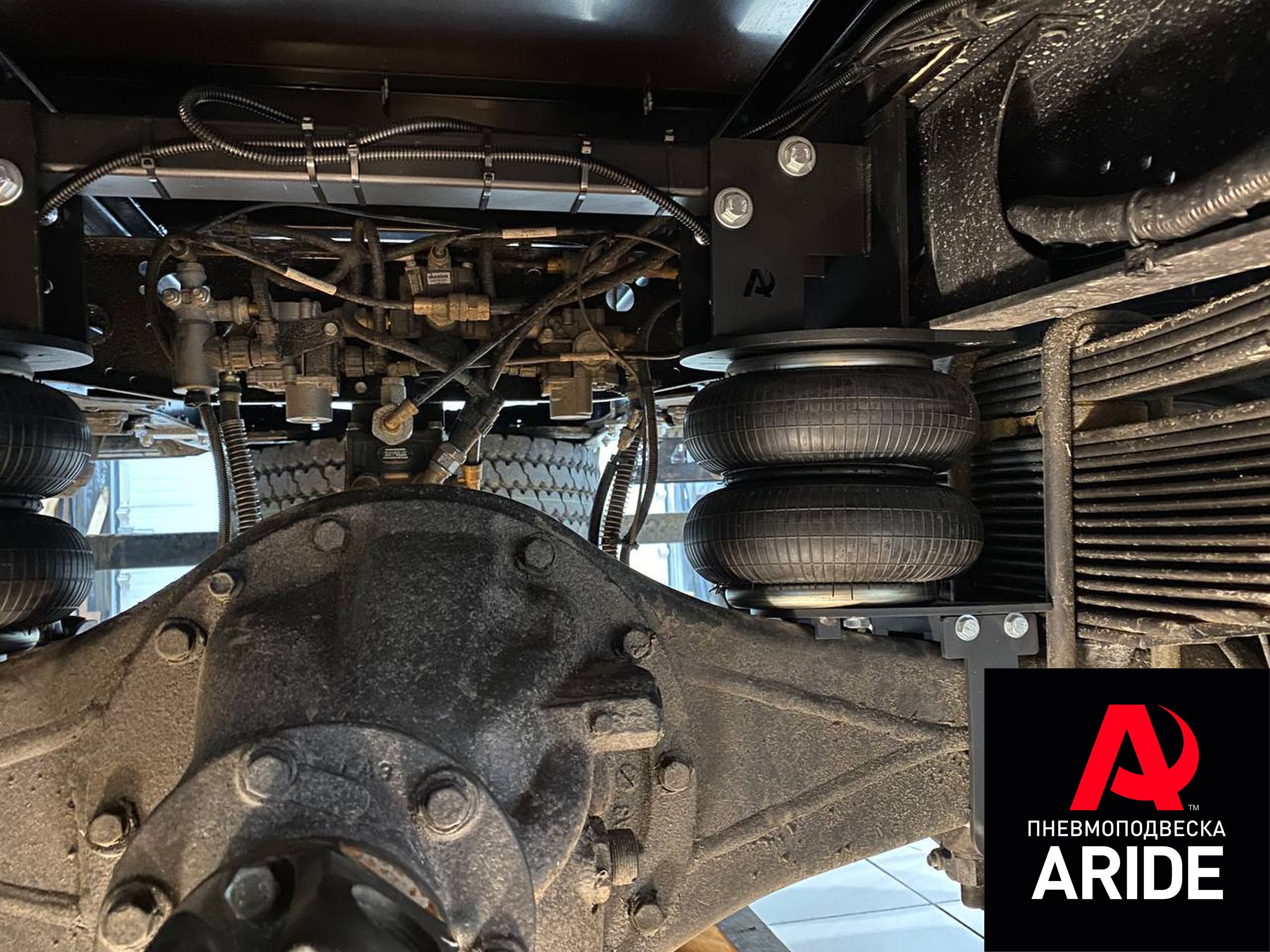 Автомобиль был дооснащён вспомогательной пневмоподвеской на заднюю ось, в дополнение к заводским рессорам. На заднем мосту разместились два пневмоэлемента, грузоподъёмностью по 2000 кг каждый. Комплект оснащён поперечным усилителем, что полностью убирает вращающий момент с рамы. Нижняя часть комплекта надёжно крепится к мосту. В штатное отверстие в мосту, предназначенное для сапуна устанавливается переходной фитинг, для того что бы поднять сапун выше, что бы он не мешал установке комплекта.