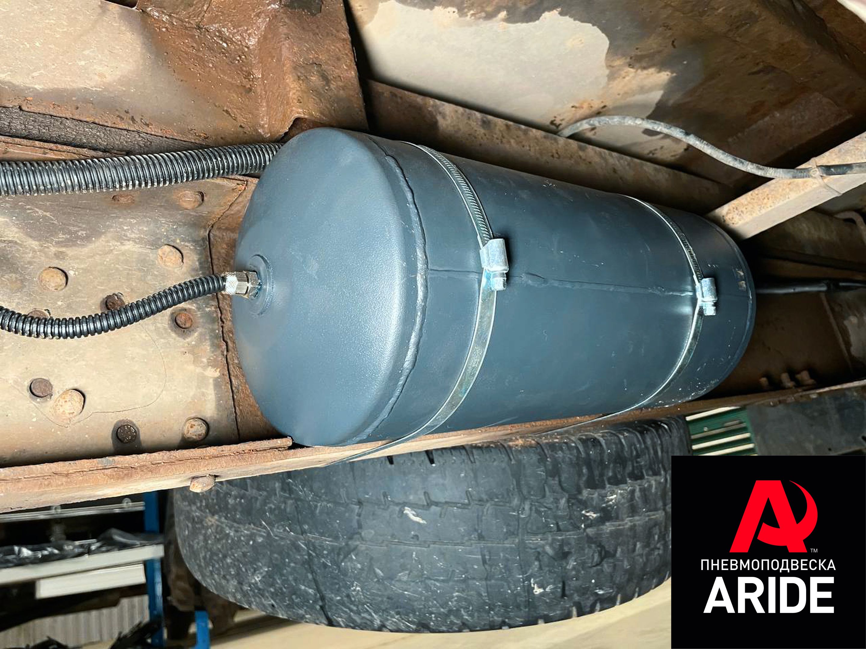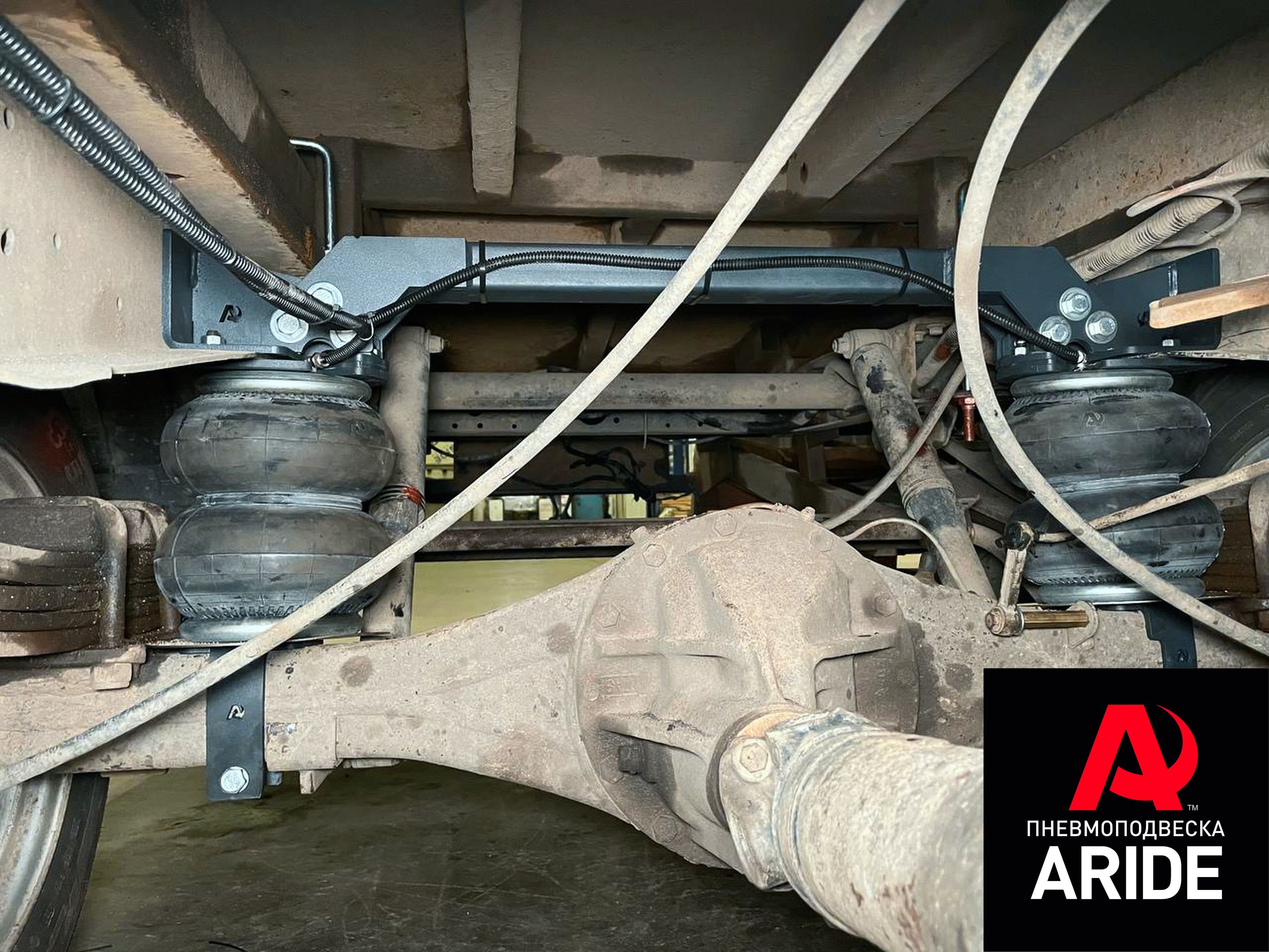Задние рессоры у данного автомобиля сильно просели, для решения проблемы было принято решение по установке комплекта вспомогательной пневмоподвески. Пневмоподушки используемые в данном комплекте смогут компенсировать нагрузку до 3000 кг.