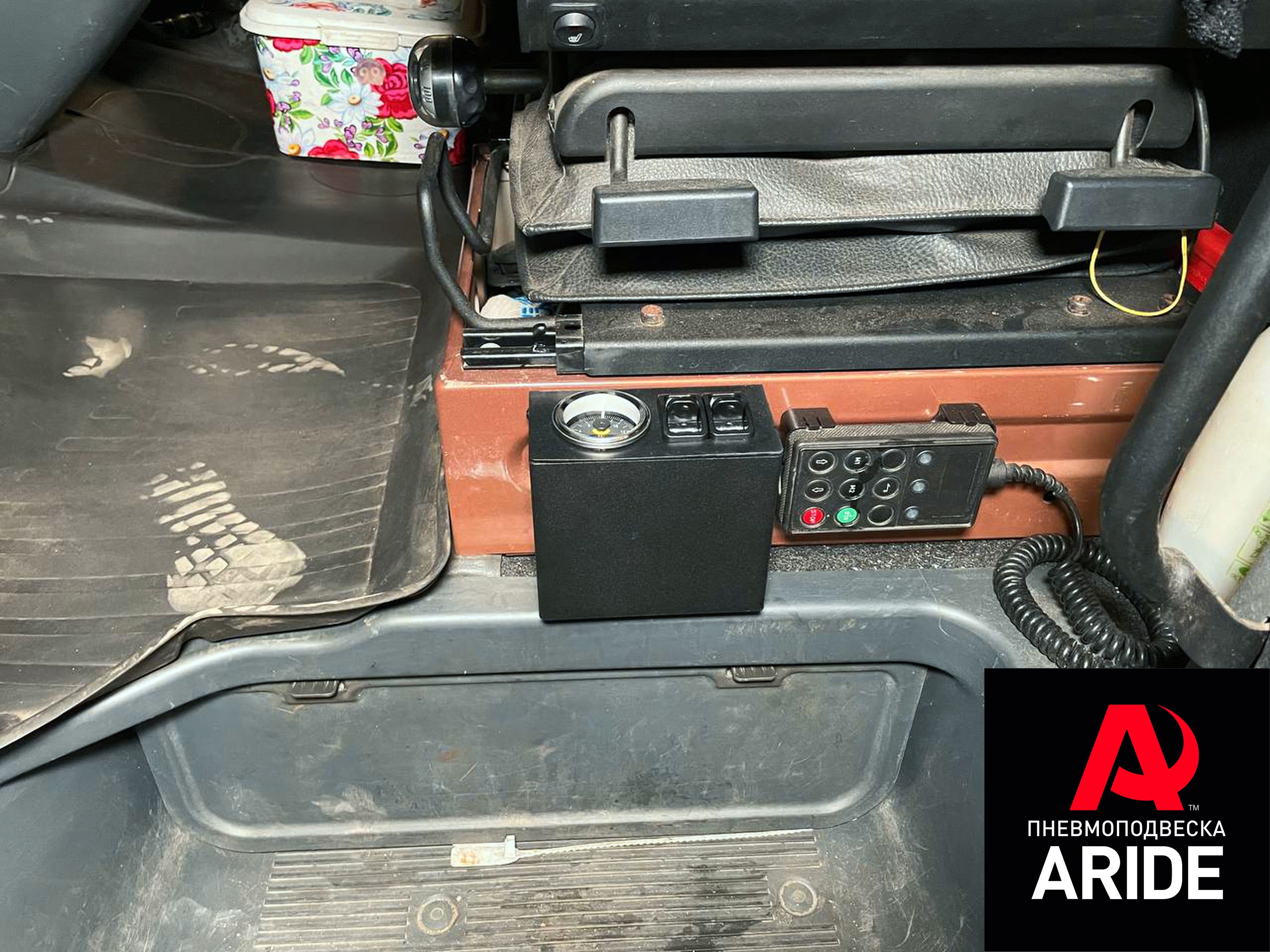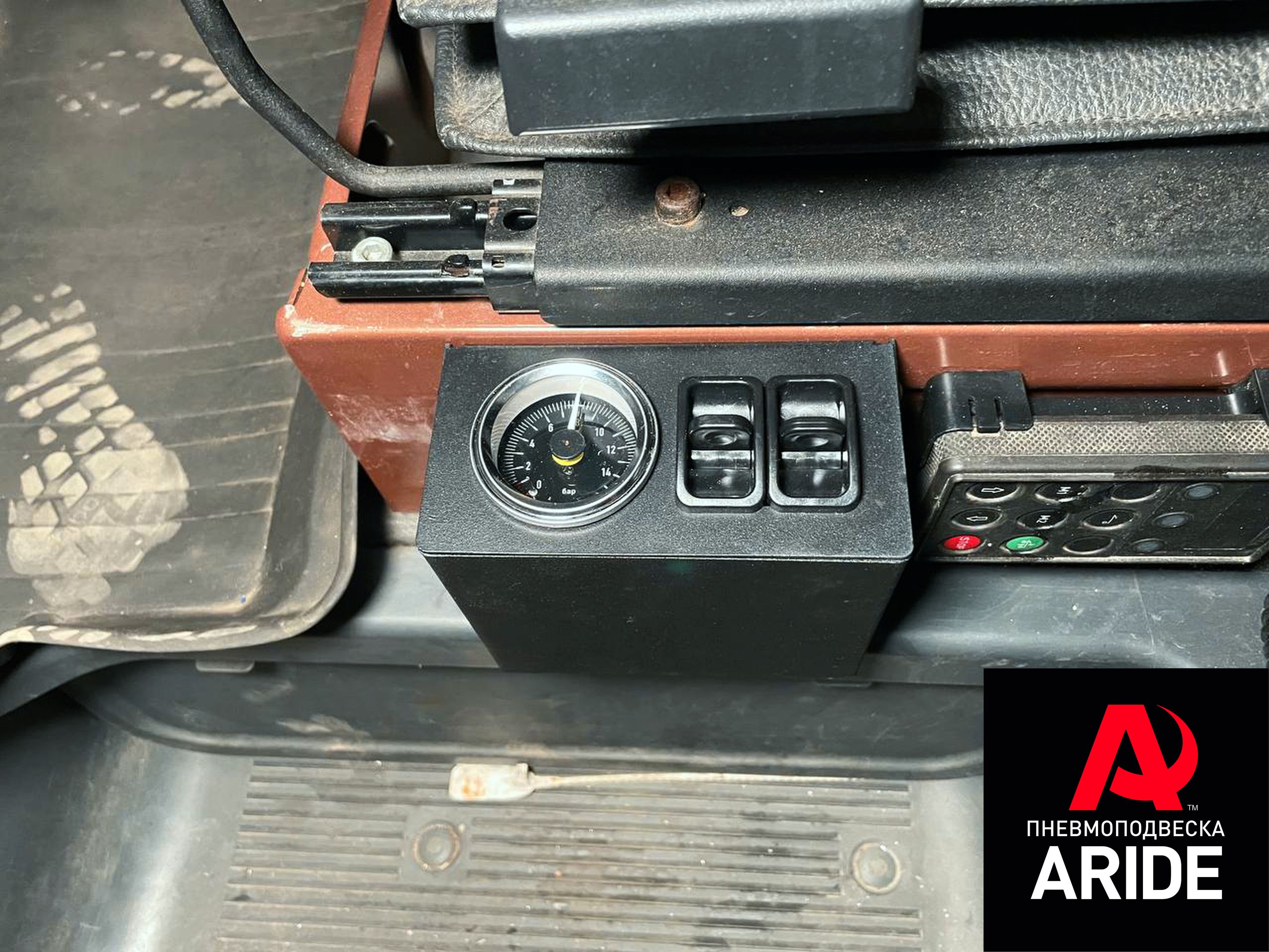 Манометр и пневмоклавиши устанавливаются в специальном закрытом коробе слева от водительского сидения.