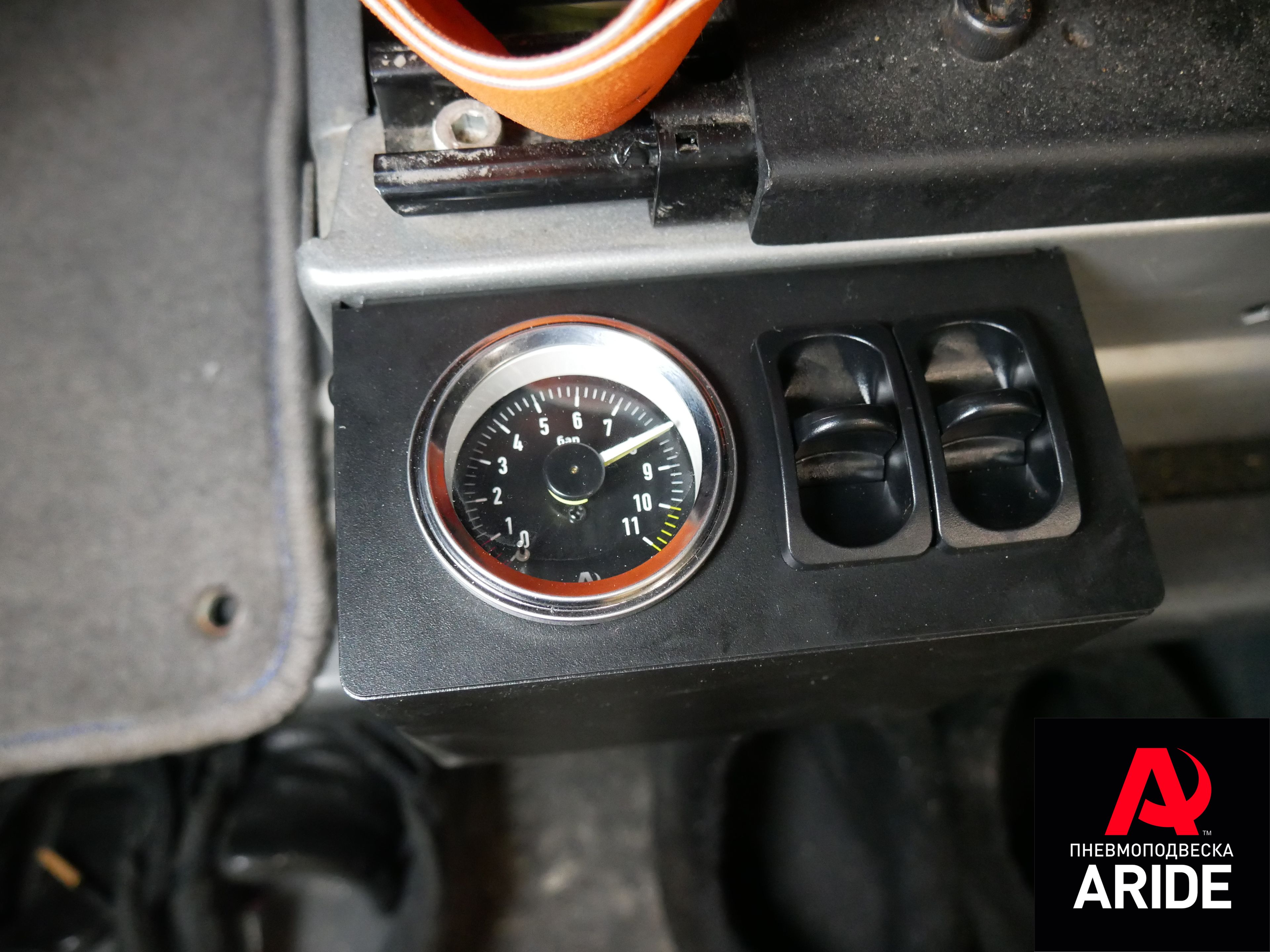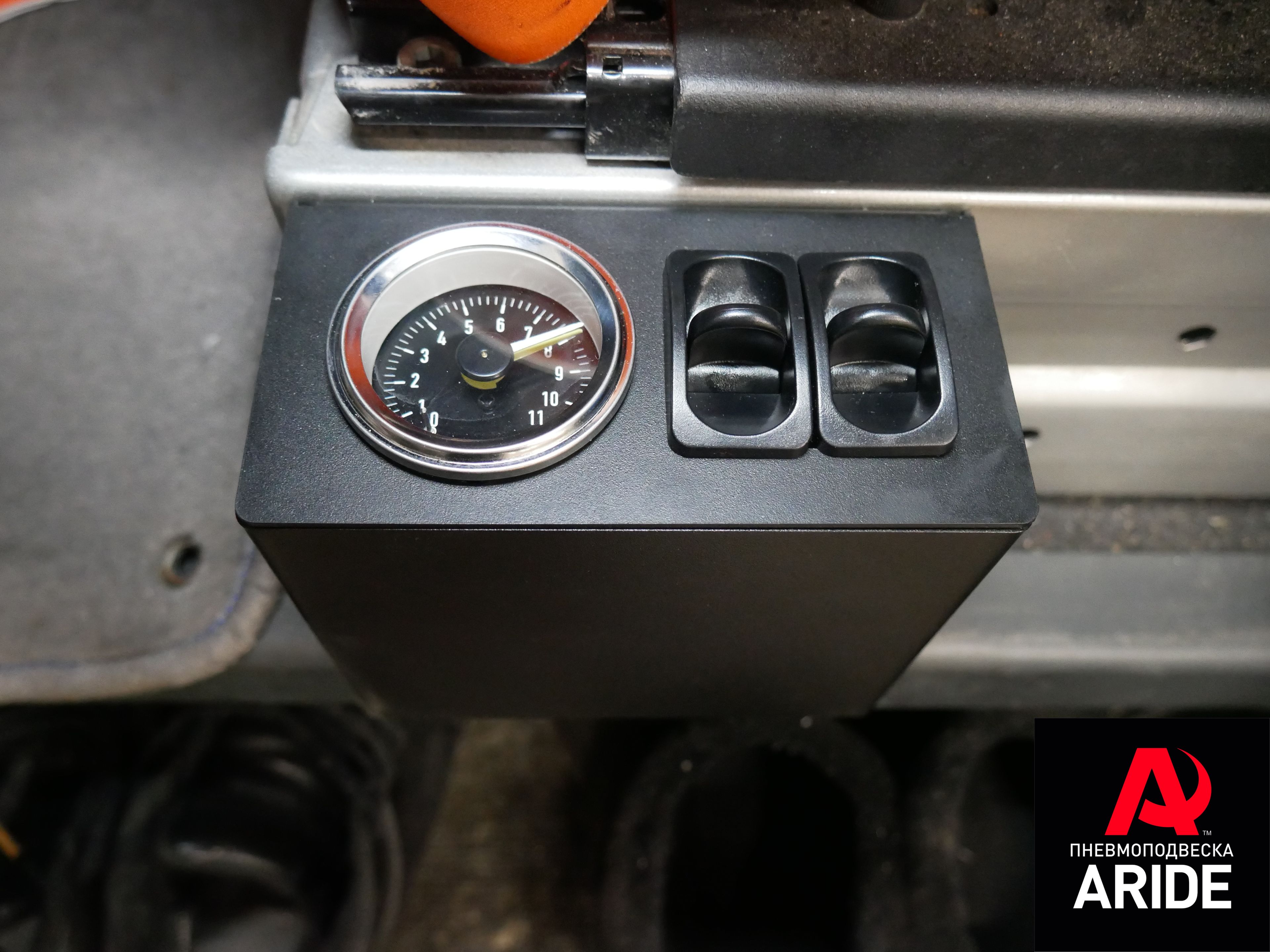 Для управления подвеской установлена простая и надежная двухконтурная система на пневмоклавишах работающая от штатного ресивера на газоне. Весь блок управления с клавишами и манометром умещается в небольшом металлическом кожухе, который крепится к сиденью водителя.