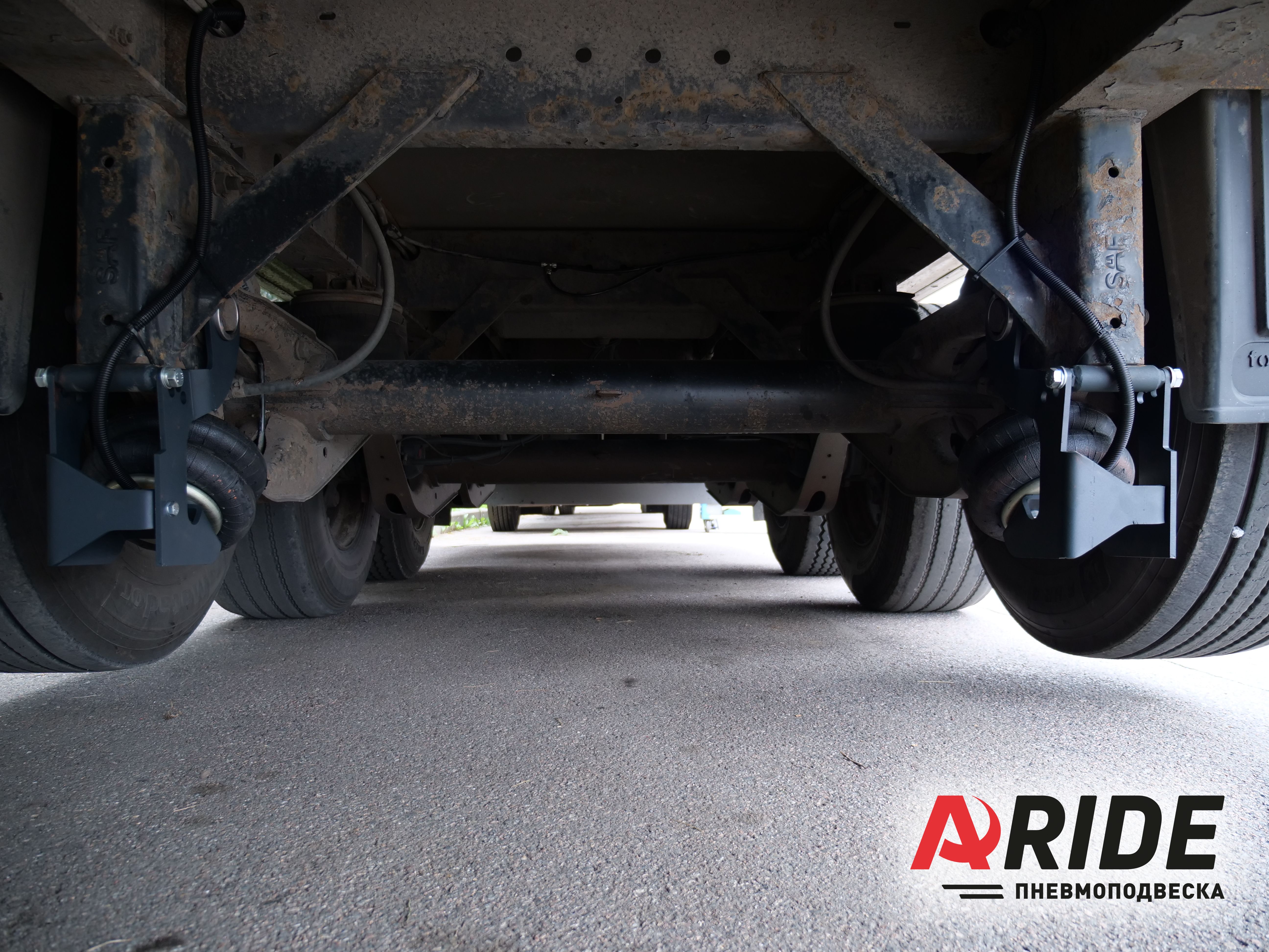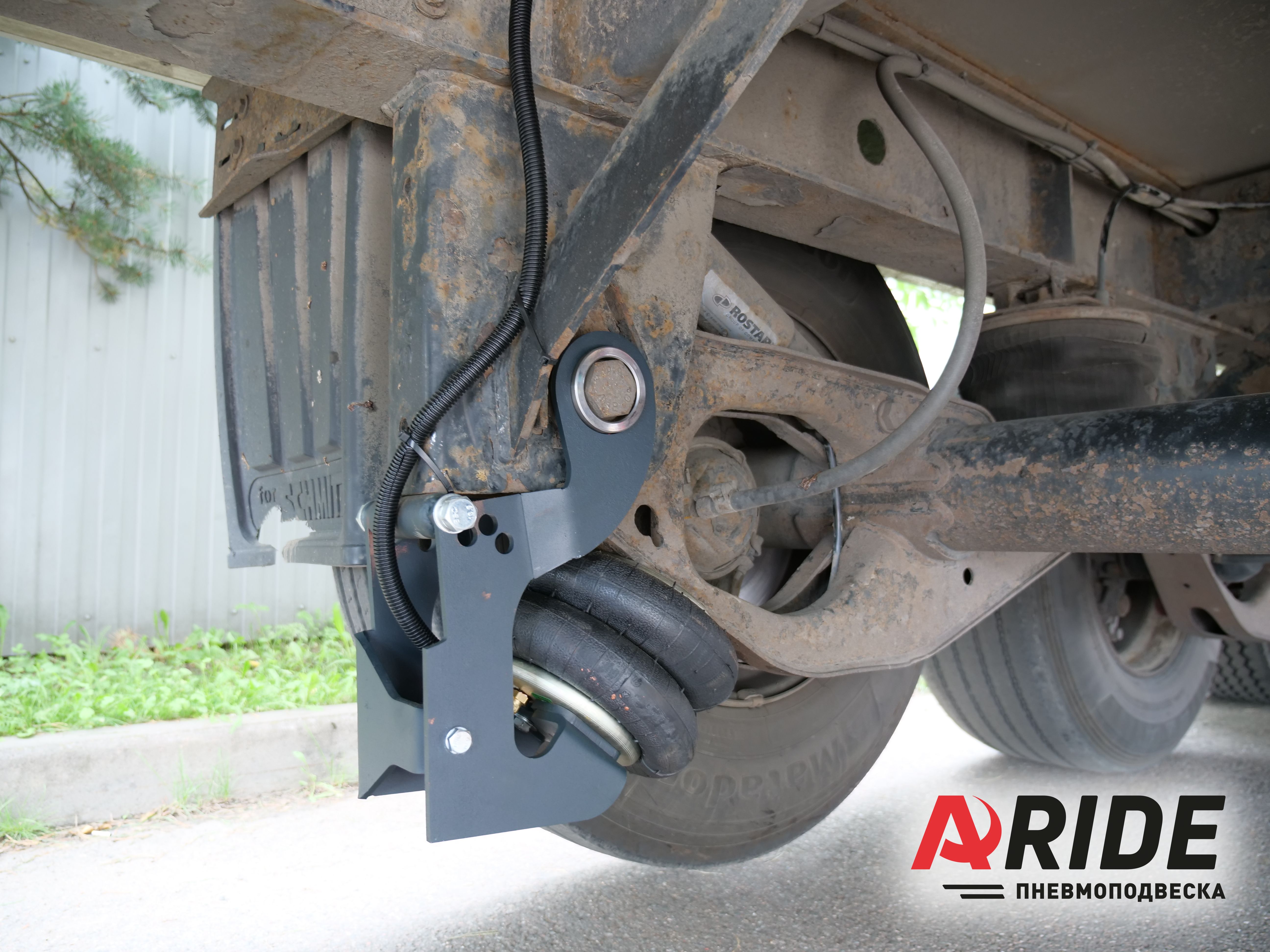 Комплект устанавливается на заводские места. Для его монтажа, нет необходимости в использовании сварочных работ. Крепление кронштейнов происходит за счёт болтов, а так же за счёт специальных втулок, которые надеваются на гайки, крепящие палец полурессоры. Регулировка давления в пневматических подушках, поднимающих ось, реализуется при помощи системы управления, которая подключается к воздушной системе автомобиля. Кран, отвечающий за поднятие оси, устанавливается на раму полуприцепа.