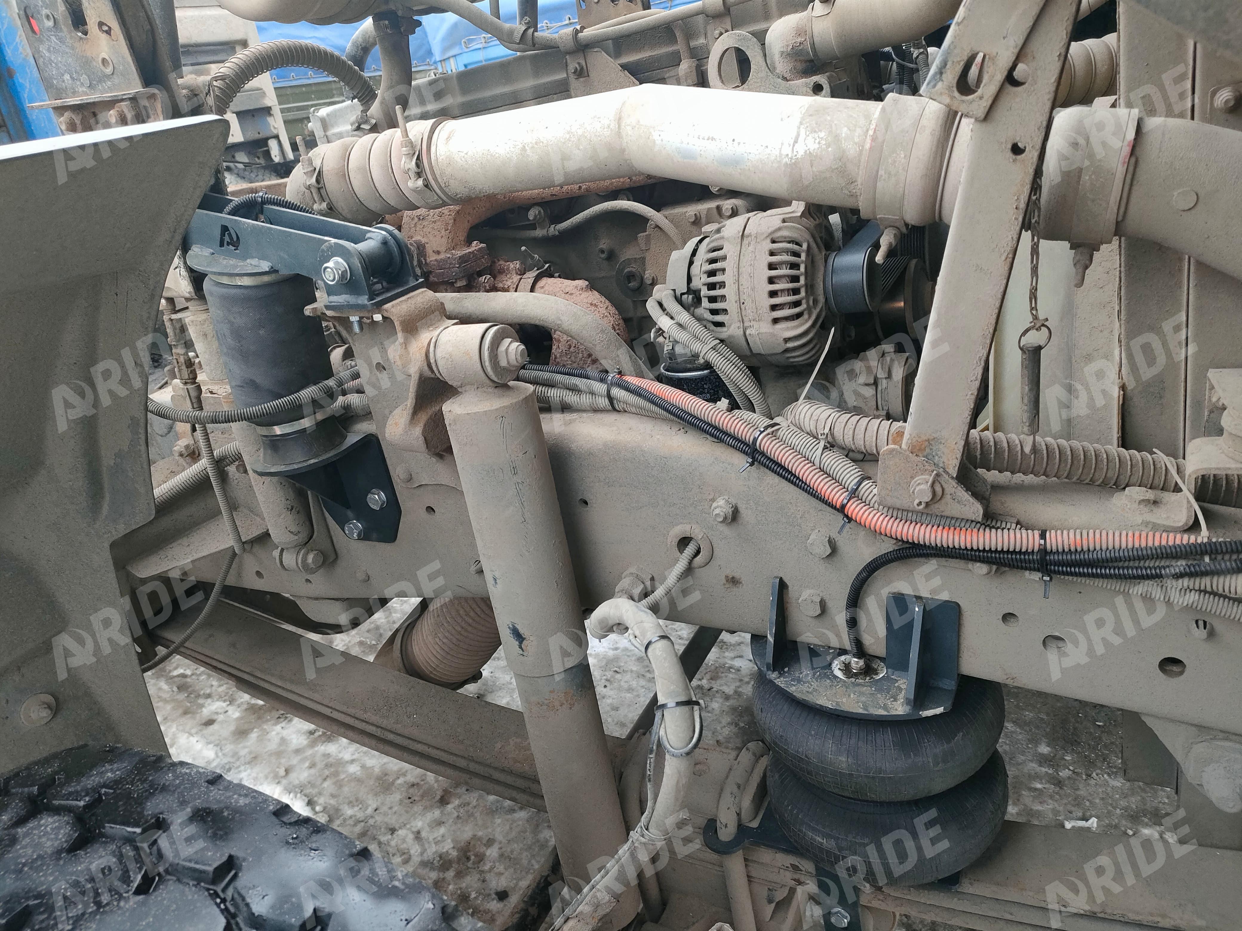 Комплект установленный на переднюю ось, компенсирует до 5000 килограмм нагрузки. Но самое важное что он делает автомобиль более комфортным в управлении, и даёт возможность регулировки клиренса, за счёт установленной системы управления, которая подключается к заводскому ресиверу.