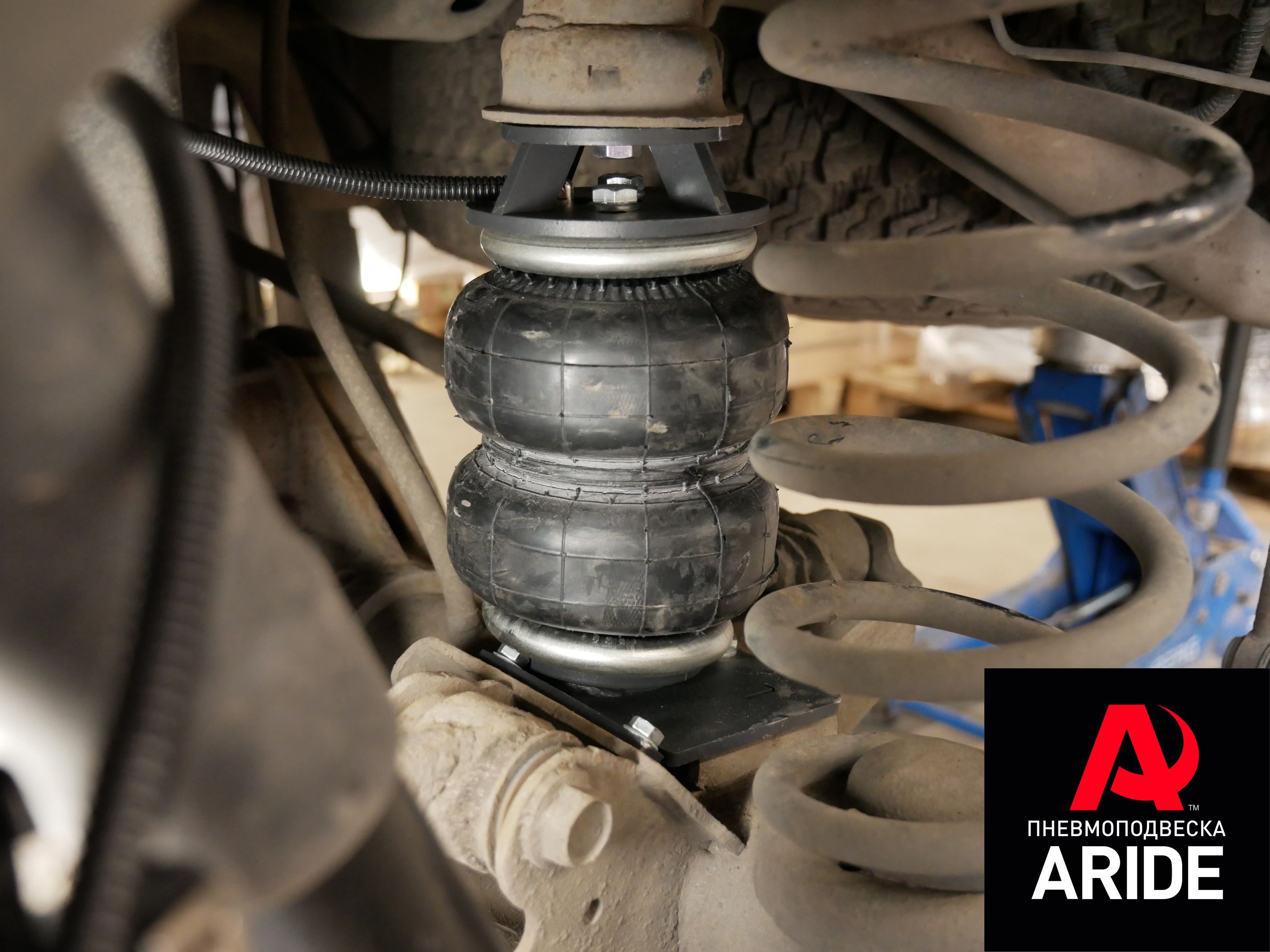 Он устанавливается на заднюю ось, нижняя часть при помощи кронштейнов крепится к мосту, а верхняя часть пневмоэлемента крепится к раме автомобиля. Конструкция получается очень надёжной и долговечной.??