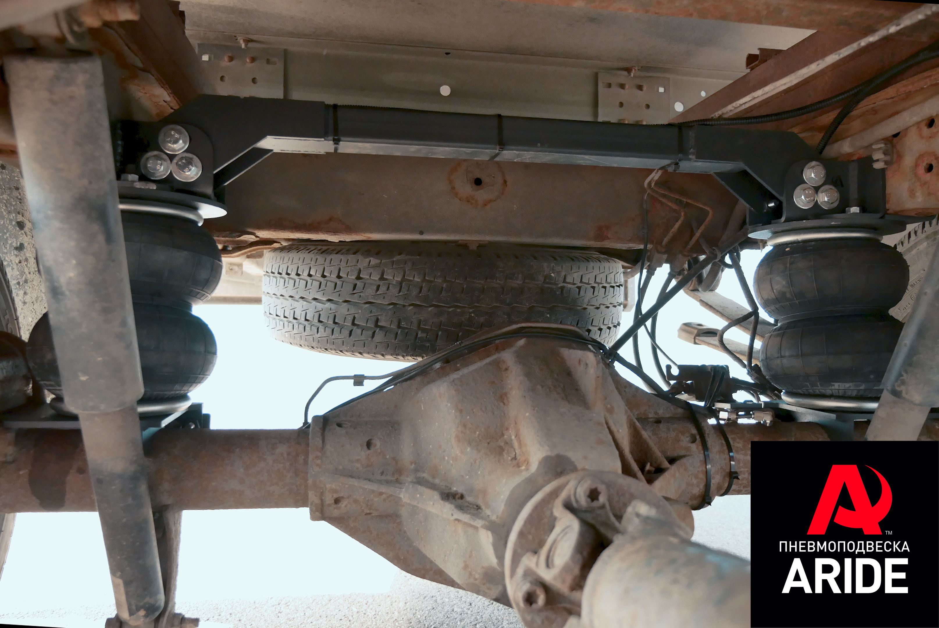 Это бортовой Транзит, со специальной надстройкой, так называемой "пирамидой" для перевозки окон. Данная машина имеет всего два листа рессор на каждом колесе на задней, и конечно же это отрицательно сказывается на грузоподъёмности данного авто, ведь как мы знаем, стекла, это не самый лёгкий груз. На заднюю ось был установлен комплект с усиленными подушками, имеющими грузоподъёмность по 1500кг. Это помогло значительно разгрузить уставшие рессоры данного авто. Комплект изготовлен из 6мм стали, что полностью исключает возможность поломки, изгиба, разрушения конструкции комплекта. Так же данный комплект оборудован поперечным усилителем, что так же полностью убирает вращающий момент с рамы.