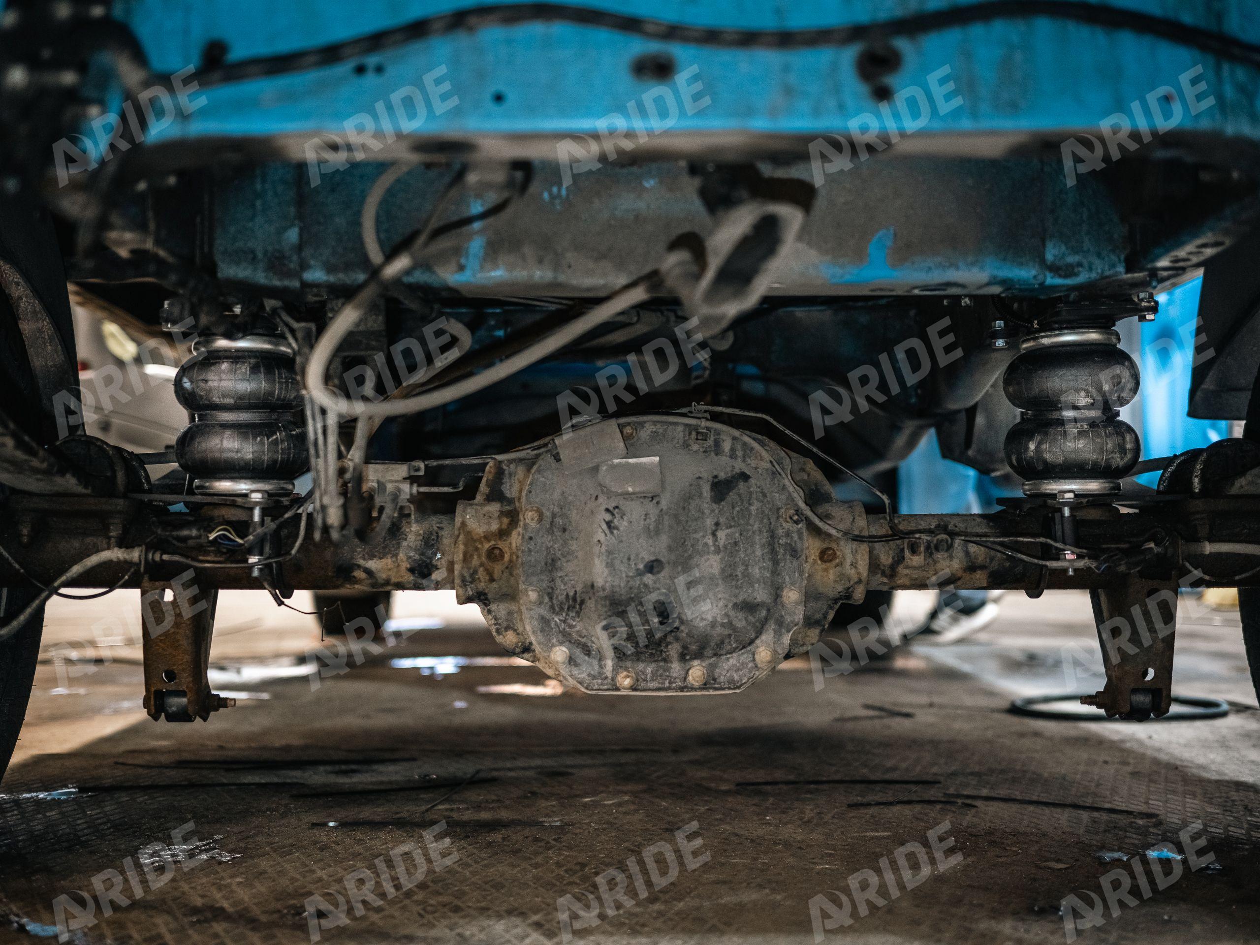 Несмотря на то, что автомобиль имеет односкатную ошиновку на задней оси, грузоподъёмность его рессорного пакета эксплуатируется на все 100%. Со временем это отрицательно скажется на общей грузоподъёмности автомобиля. Для того что бы защитить рессоры от износа и улучшить заводские показатели по грузоподъёмности, на задний мост данного автомобиля были установлены вспомогательные пневматические подушки.