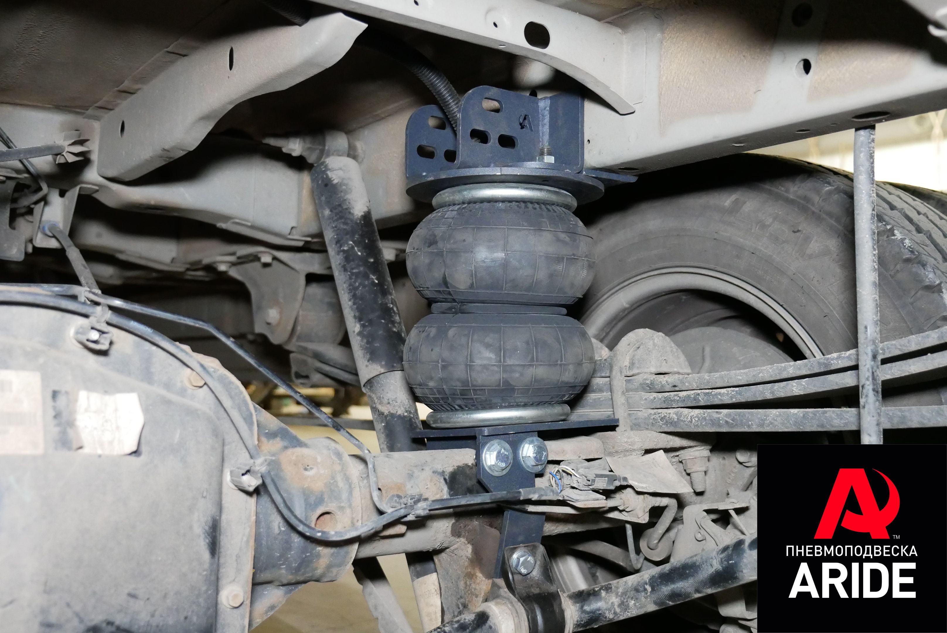 Тем сам за счёт установки пневмоподвески нам удалось компенсировать с рессор до 3000кг.