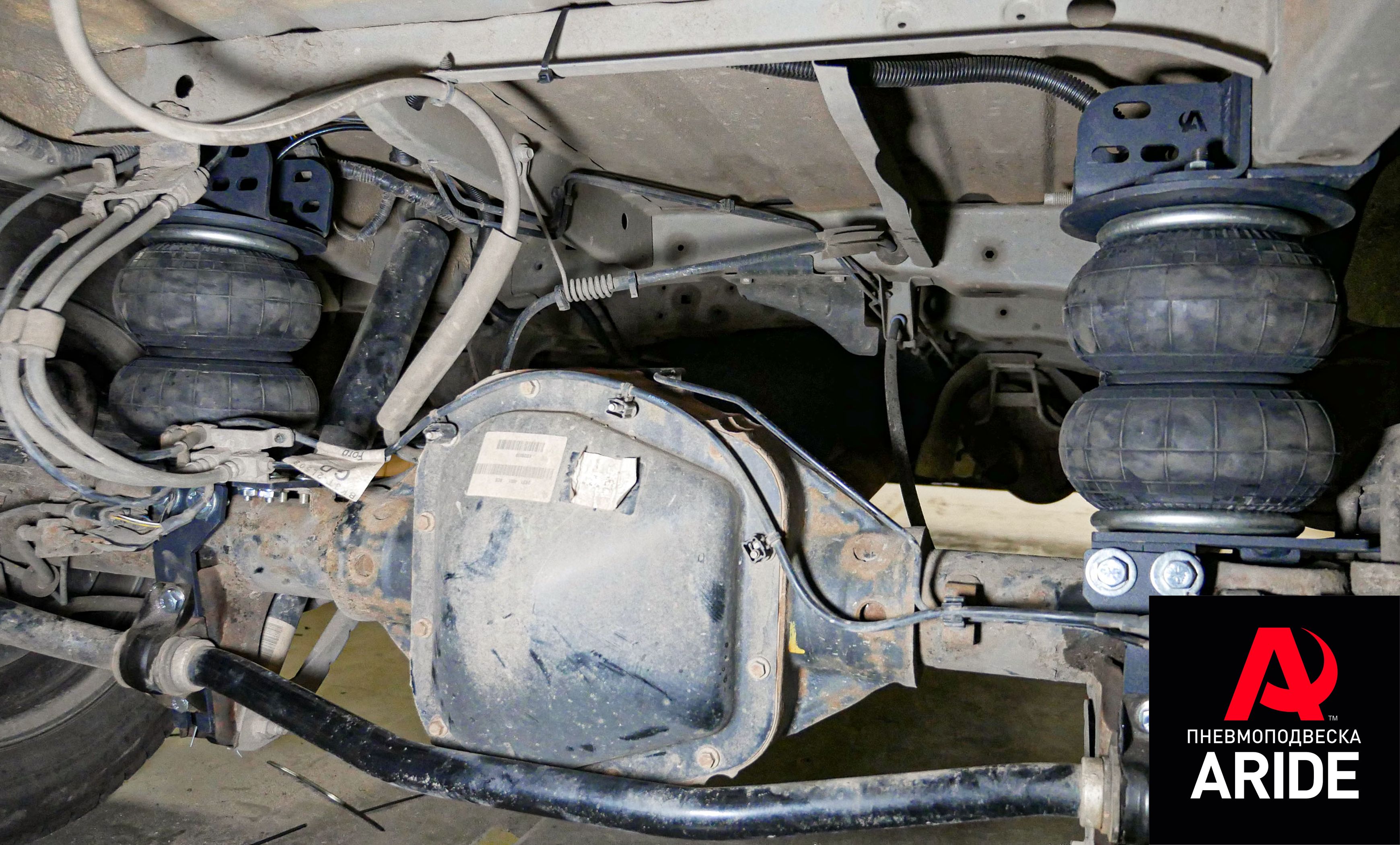 На машину были установлены усиленные пневмоподушки 180D1. 180D1 - это пневмоэлемент имеющий резино-кордную конструкцию типа двойной сильфон металлическим межсекционным кольцом. Резиновая оболочка подушки выполнена из качественной и прочной резины, корд выполнен из трёх слоёв нейлона с высокой плотностью плетения. Верхняя и нижняя крышки выполнены из металла. Крышки завальцованы на оболочке, что даёт высокую степень герметичности. Грузоподъёмность каждой такой подушки составляет до 1500кг при давлении в 8 атмосфер.