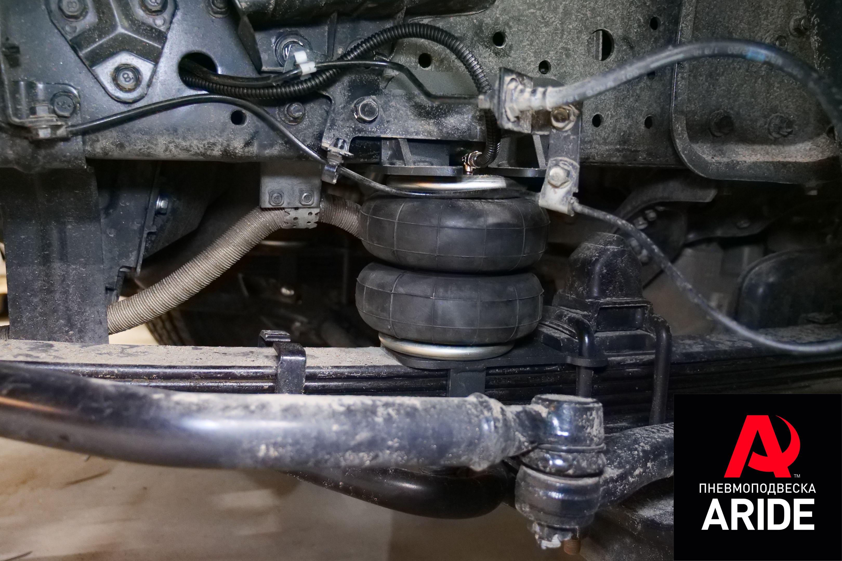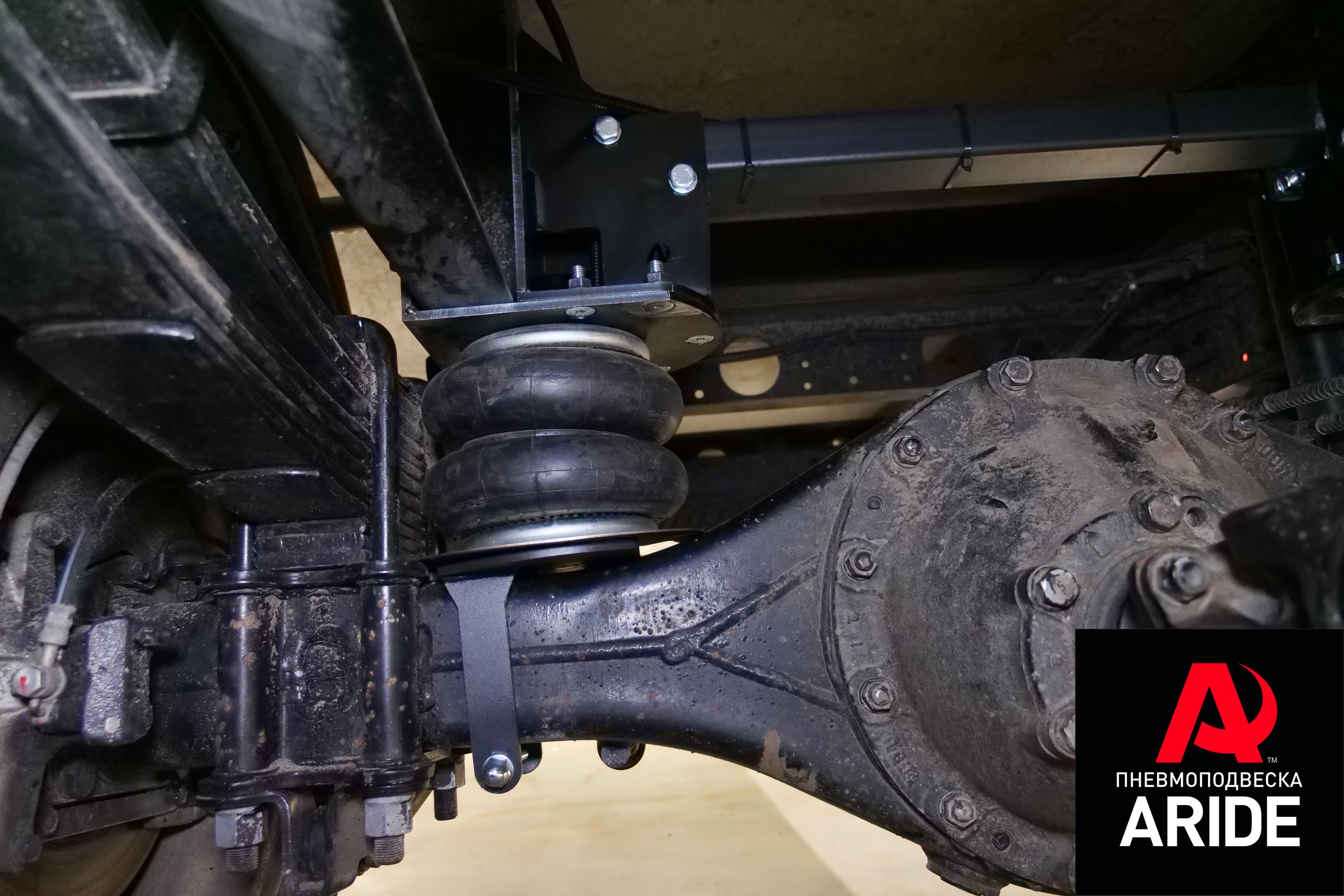 Нашими мастерами был установлен комплект на заднюю ось, в дополнение к заводским рессорам. Каждая подушка установленная на задней оси дала нам по 1500кг. грузоподъёмности.